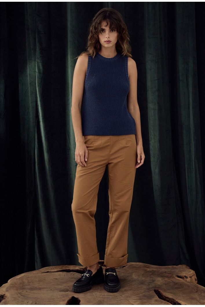 A regata Dansu é a definição de elegância atemporal. Desenvolvida em uma mescla de algodão e acrílico, essa peça une o toque macio e natural do algodão à durabilidade do acrílico, resultando em um tricô sofisticado e confortável.
