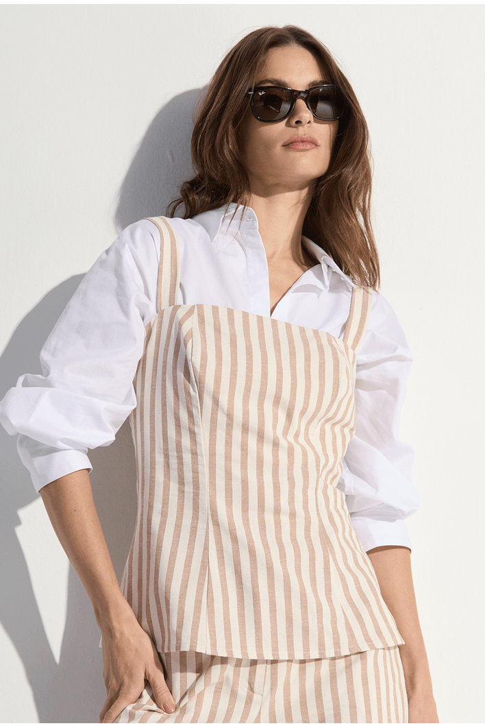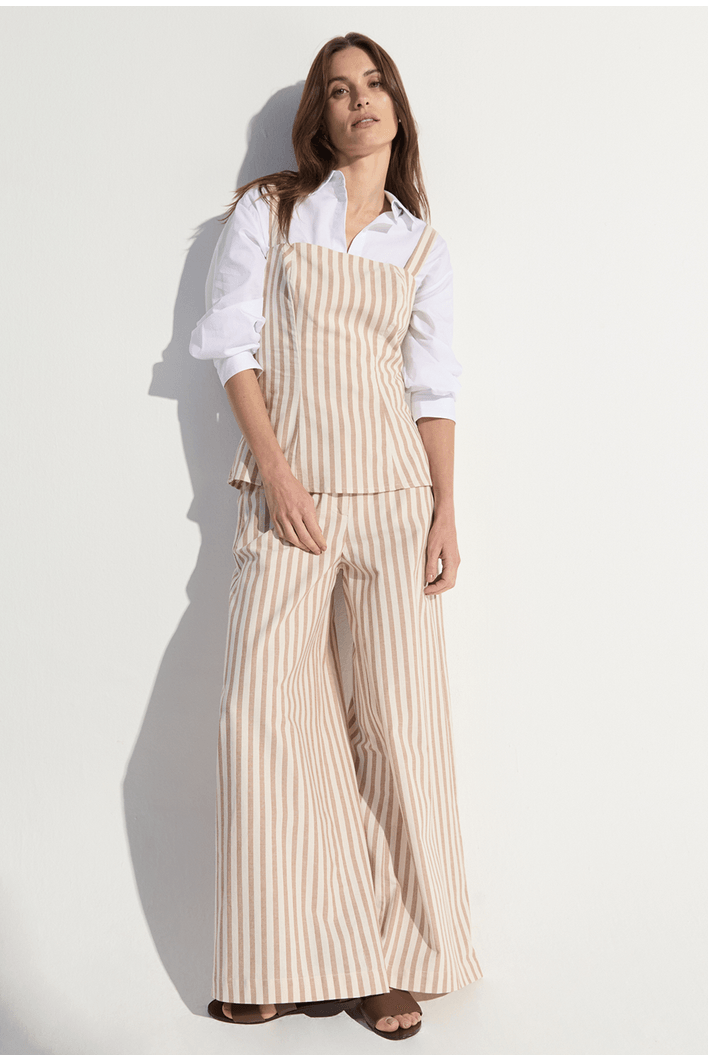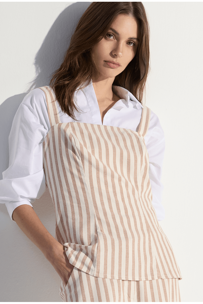 A regata listrada traz um design leve e contemporâneo, perfeito para composições frescas e sofisticadas. Seu caimento fluido se adapta ao corpo com naturalidade, enquanto as listras verticais alongam a silhueta e conferem um visual moderno e elegante. O modelo possui alças delicadas e estrutura confortável, garantindo liberdade de movimento e um toque suave sobre a pele. Versátil e atemporal, combina perfeitamente com calças amplas, shorts ou peças de alfaiataria, sendo ideal para dias quentes, viagens ou produções casuais com estilo.