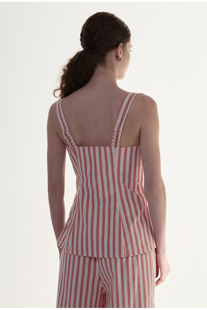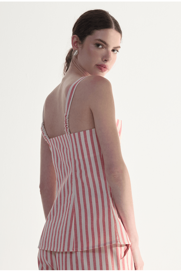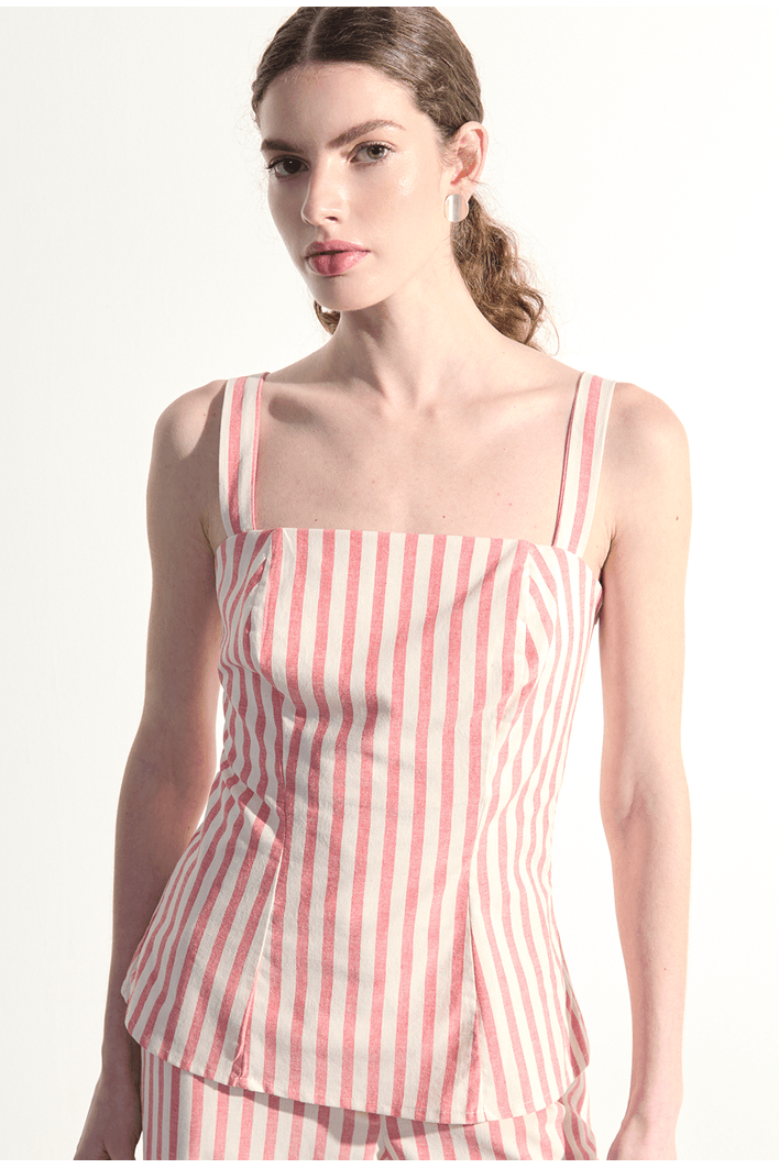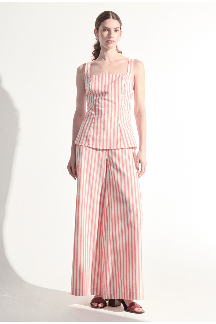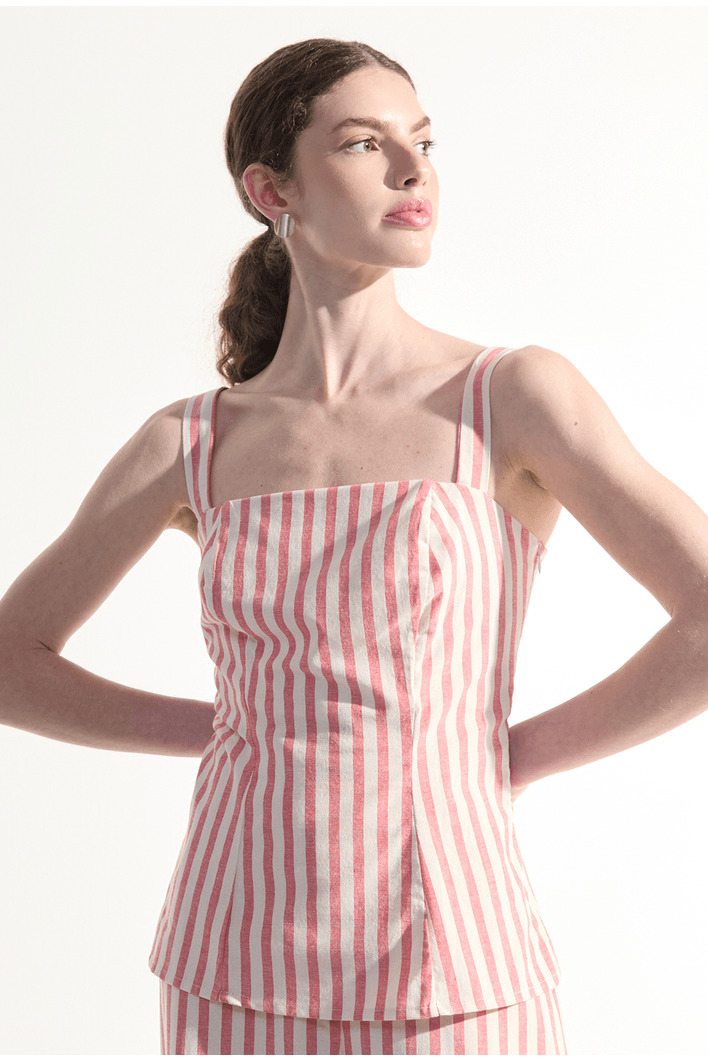 A regata listrada traz um design leve e contemporâneo, perfeito para composições frescas e sofisticadas. Seu caimento fluido se adapta ao corpo com naturalidade, enquanto as listras verticais alongam a silhueta e conferem um visual moderno e elegante. O modelo possui alças delicadas e estrutura confortável, garantindo liberdade de movimento e um toque suave sobre a pele. Versátil e atemporal, combina perfeitamente com calças amplas, shorts ou peças de alfaiataria, sendo ideal para dias quentes, viagens ou produções casuais com estilo.
