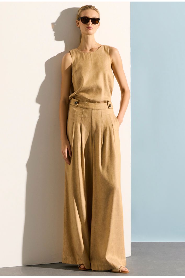 Confeccionada em tecido nobre de viscose e linho, esta peça combina conforto e sofisticação. Possui gola arredondada que valoriza o visual e um fechamento traseiro delicado com botão e elástico, harmonizando perfeitamente com a cor da regata. Versátil e atemporal, é a escolha ideal para quem busca elegância e bossa!