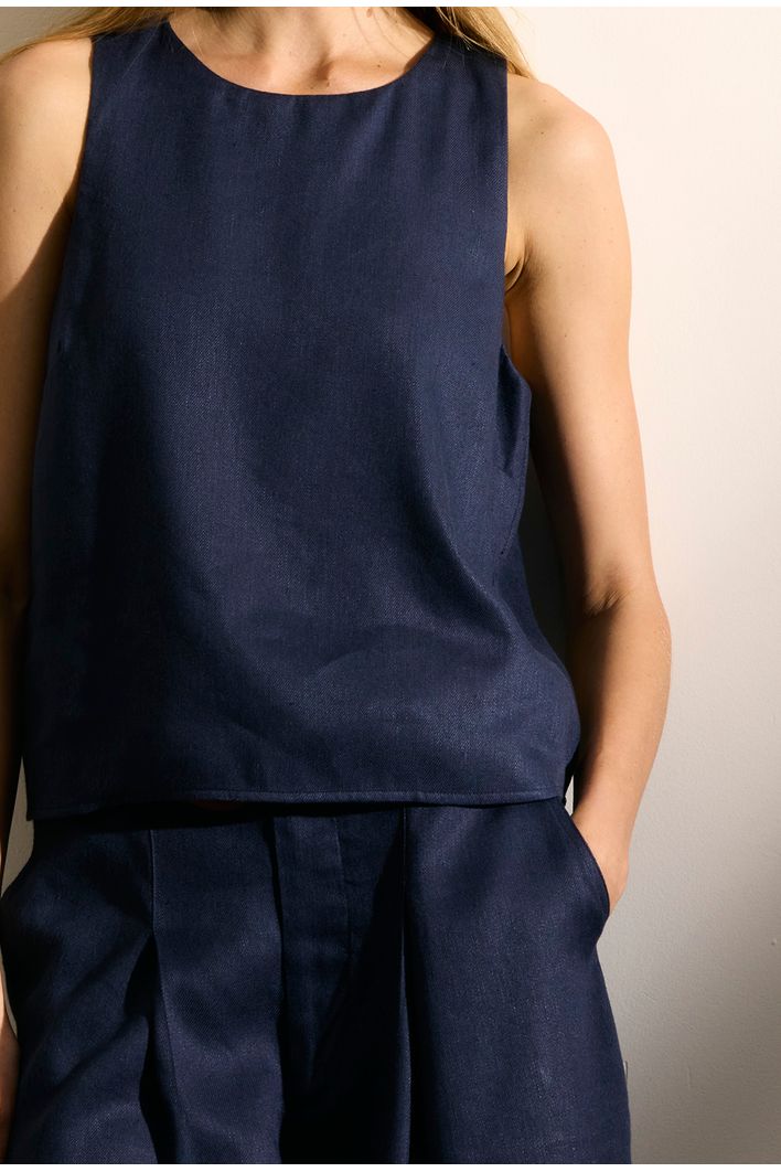 Confeccionada em tecido nobre de viscose e linho, esta peça combina conforto e sofisticação. Possui gola arredondada que valoriza o visual e um fechamento traseiro delicado com botão e elástico, harmonizando perfeitamente com a cor da regata. Versátil e atemporal, é a escolha ideal para quem busca elegância e bossa!