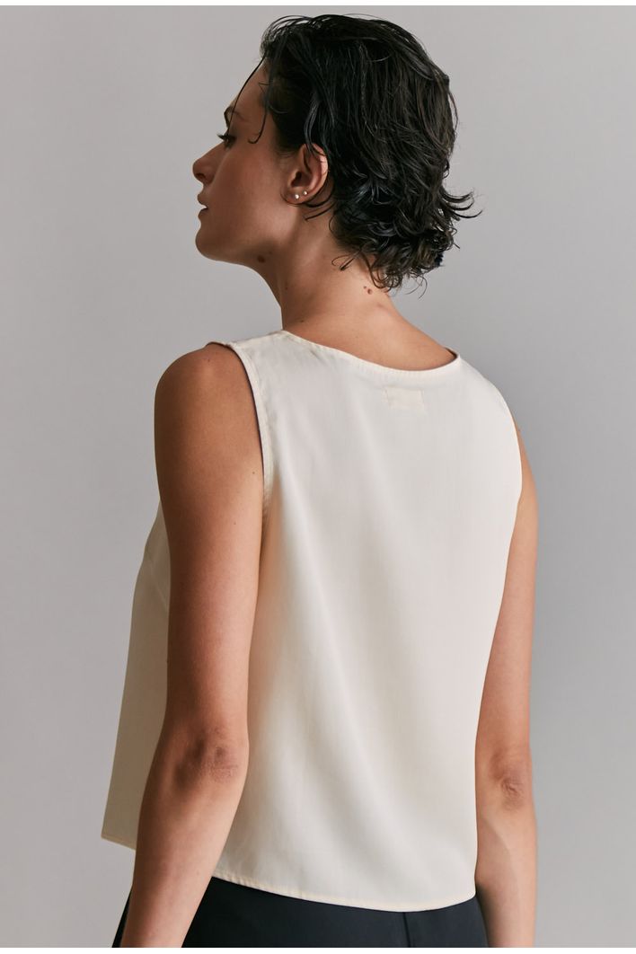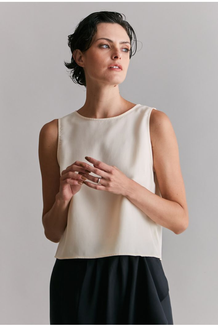 A regata stiniva possui comprimento cropped, modelagem reta e é confeccionada em um tecido muito macio e durável de Lyocell. Por conta de sua alta capacidade de absorção de umidade garante frescor para pele, sendo ótimo para dias quentes. É uma peça atemporal que vai estar presente em várias de suas composições, atendendo a diversas ocasiões e moods.