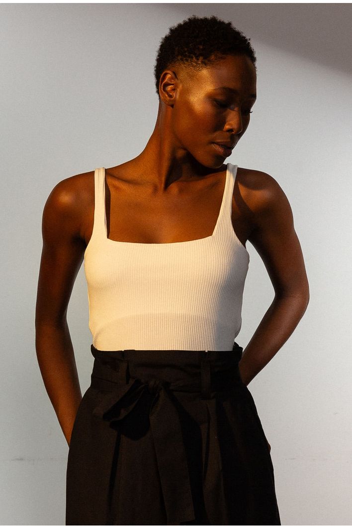 Feita em malha canelada muito macia e com acabamentos impecáveis, nossa regata Xanthi é um básico com estilo. Possui decote quadrado, alças finas e forro com elástico para proporcionar mais conforto.