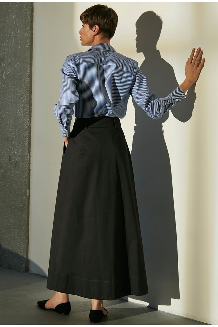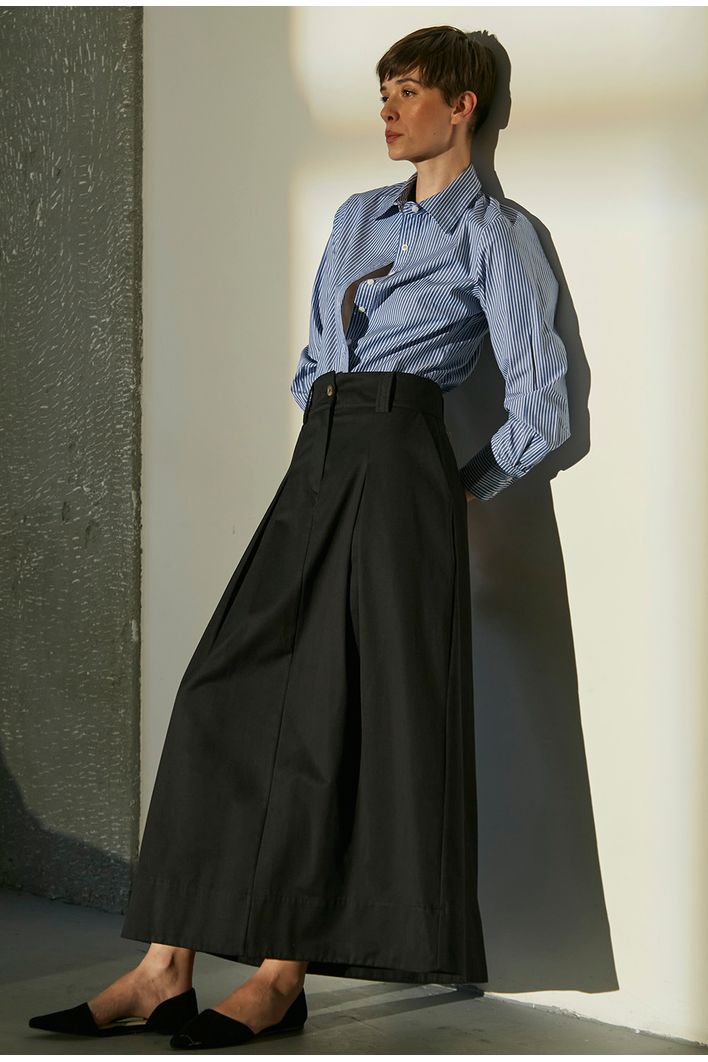 Nossa saia amanu é um basic charmoso e muito versátil, trazendo sofisticação e elegância para visuais mais elaborados ou mais despojados. Possui modelagem evasê e por ser feita em tecido 100% algodão é levemente estruturada, adquirindo o caimento perfeito.