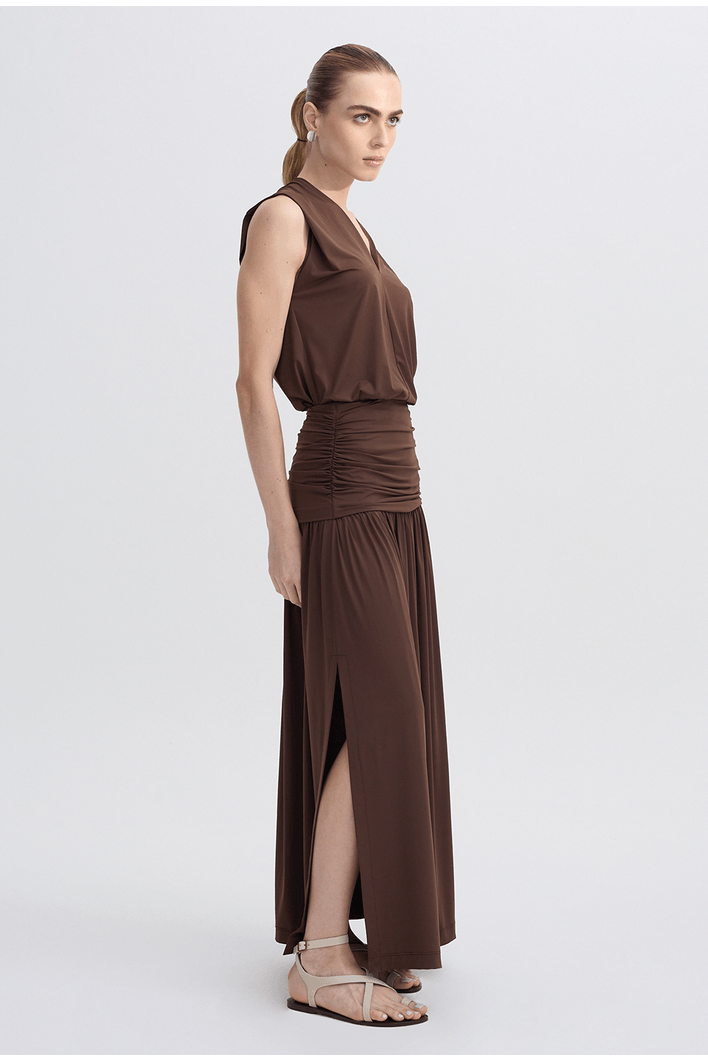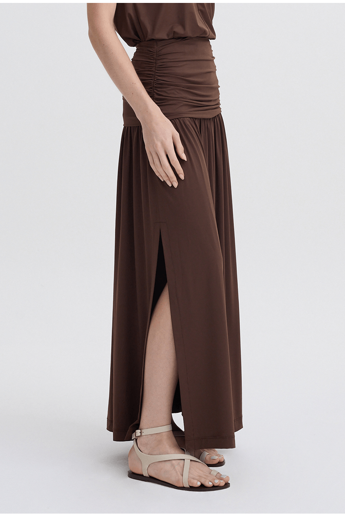 Saia longa de caimento fluido, com cintura franzida que valoriza a silhueta e garante conforto ao vestir. Possui fenda frontal que proporciona leveza ao movimento e um visual moderno. Peça versátil, ideal para composições elegantes ou casuais.