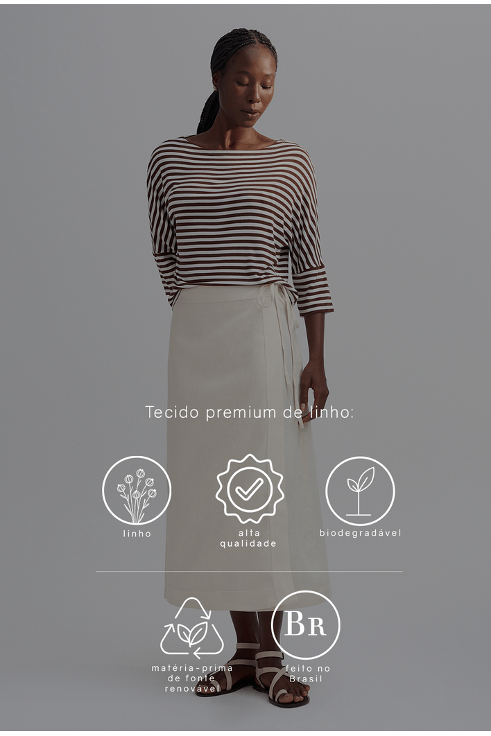 Saia Midi 100% Linho com Modelagem Reta - MyBasic