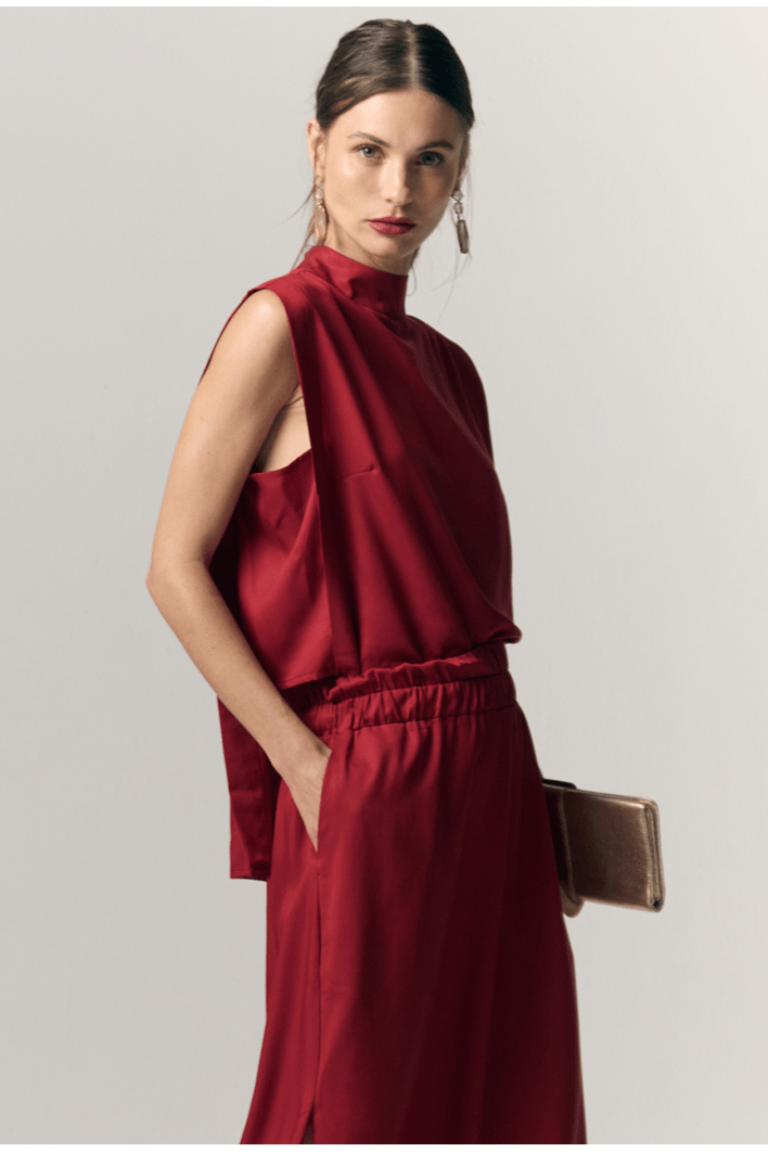 A Saia Chelba é confeccionada em 100% lyocell, uma fibra sustentável derivada da celulose. O lyocell é conhecido por seu toque macio, respirabilidade e baixo impacto ambiental. Com comprimento longuete, essa saia valoriza a silhueta, alongando as pernas de maneira elegante e sofisticada. O cós com elástico proporciona uma adaptação perfeita ao corpo, garantindo conforto e praticidade. As duas fendas laterais permitem liberdade de movimento e acrescentam um charme único à peça, tornando-a versátil e cheia de bossa.