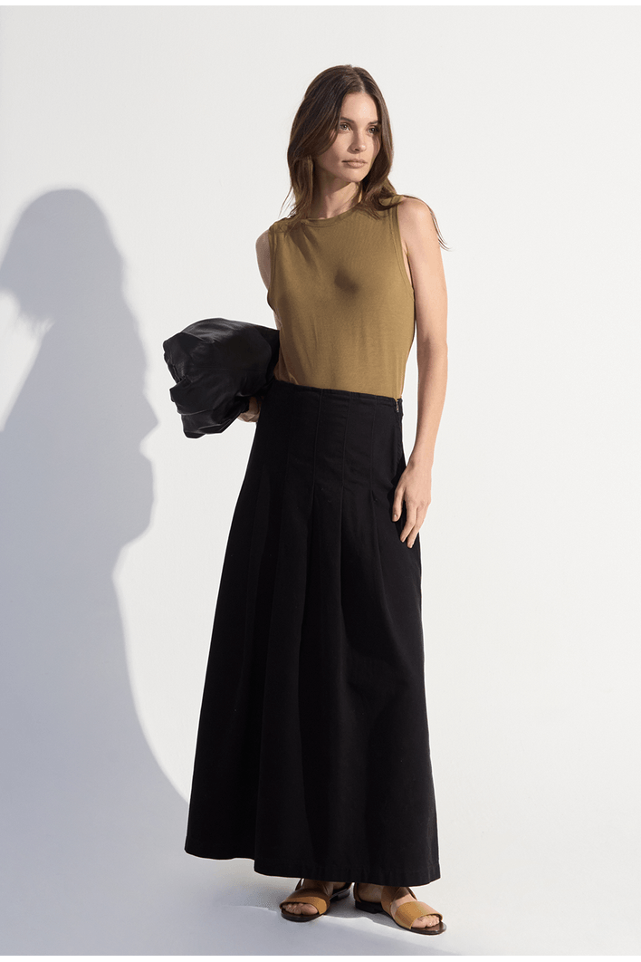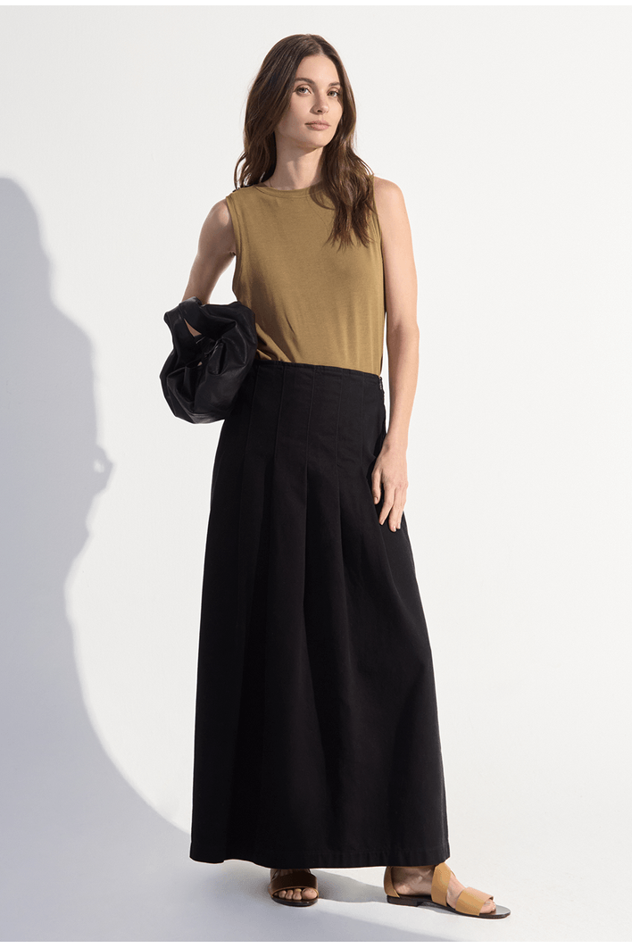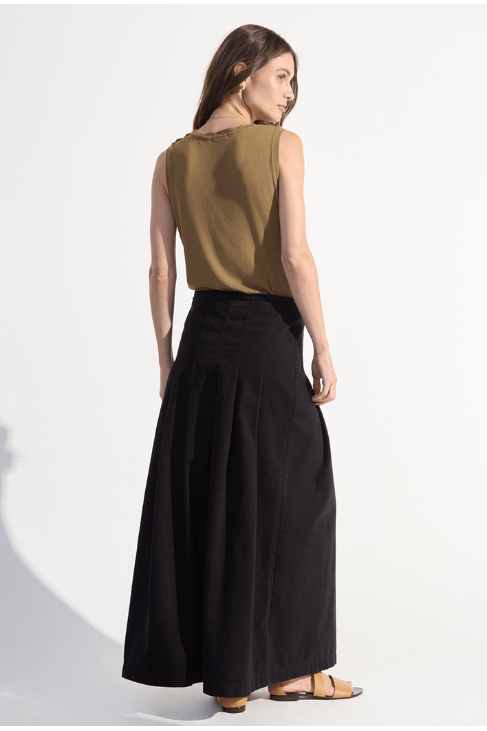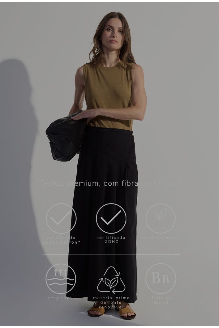Saia Midi com Pregas Jata Preto