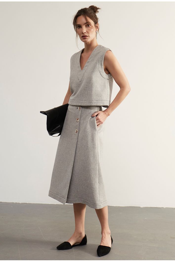 A Saia Catar é uma peça assimétrica, com um cós deslocado que adiciona um toque moderno e diferenciado ao design. Confeccionada em um tecido especial de superfície delicada, ela transmite sofisticação e leveza, perfeita para quem valoriza estilo com bossa. Os botões frontais reforçam a praticidade e o charme da peça. Além disso, a saia faz conjunto com a Regata Cora, sendo ideal para quem adora composições monocromáticas elegantes. No entanto, sua versatilidade permite que seja usada em várias combinações, oferecendo looks cheios de personalidade e conforto para diversas ocasiões.