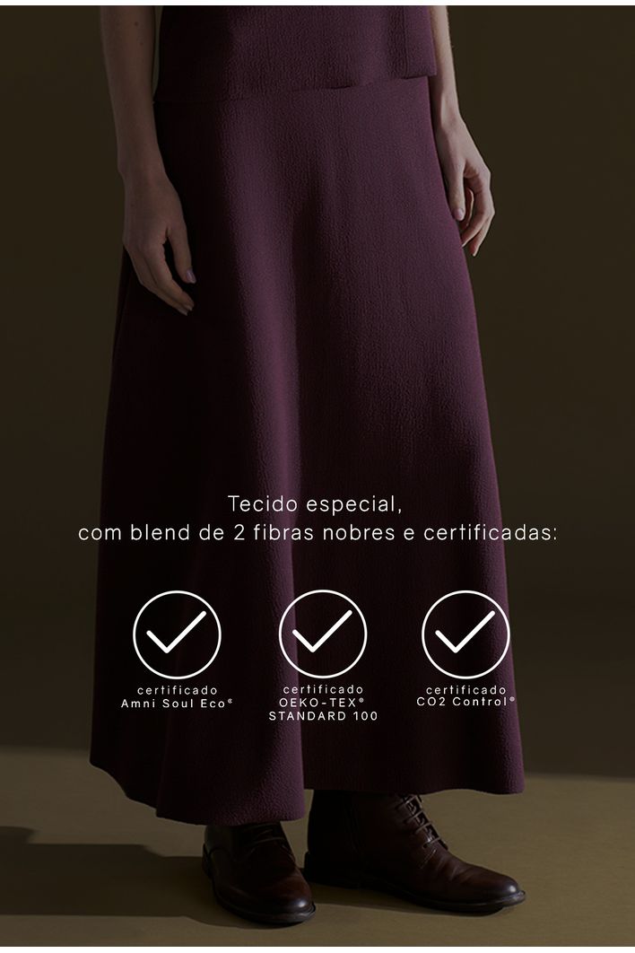 O tecido utilizado nessa peça possui poliamida Biodegradável e certificação OEKO-TEX