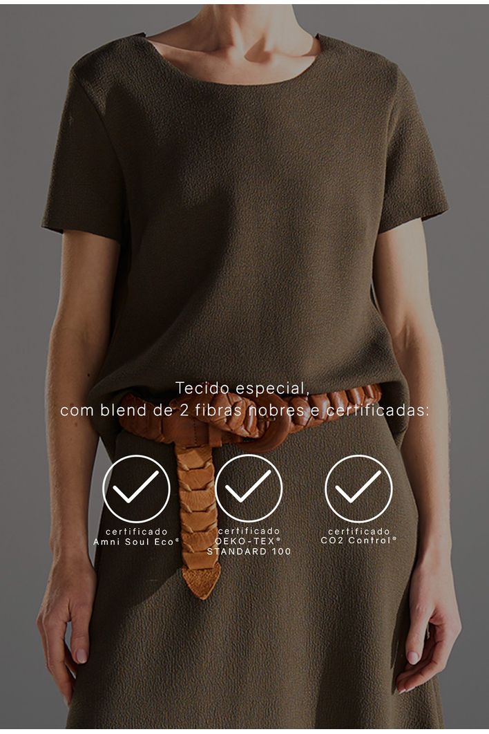 O tecido utilizado nessa peça possui poliamida Biodegradável e certificação OEKO-TEX