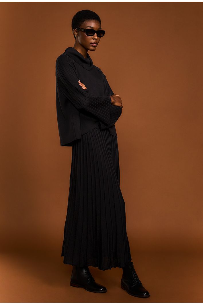 A Saia Midi Florença traz elegância e movimento ao visual com seu caimento fluido e delicadamente plissado. O design midi proporciona sofisticação atemporal, ideal para composições refinadas e versáteis. Seu tecido estruturado valoriza a silhueta com leveza, enquanto o acabamento impecável garante conforto e estilo em todas as ocasiões.