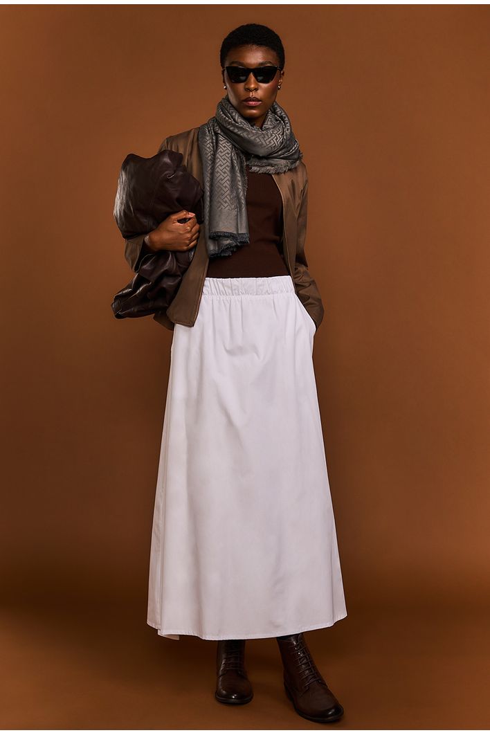 Envolva-se em puro conforto e elegância atemporal com a Saia Denver. Confeccionada em 100% algodão egípcio, esta peça oferece uma experiência sensorial única, com um toque incrivelmente macio e uma durabilidade excepcional.