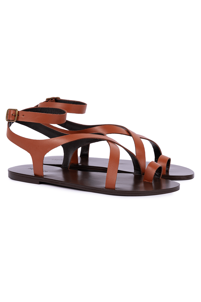 A parte superior é composta por tiras finas e suaves que se cruzam delicadamente sobre o peito do pé, criando um visual limpo e contemporâneo. a silhueta é finalizada por uma tira ajustável no tornozelo, fixada por uma discreta fivela metálica, garantindo um calce perfeito e seguro a cada passo.