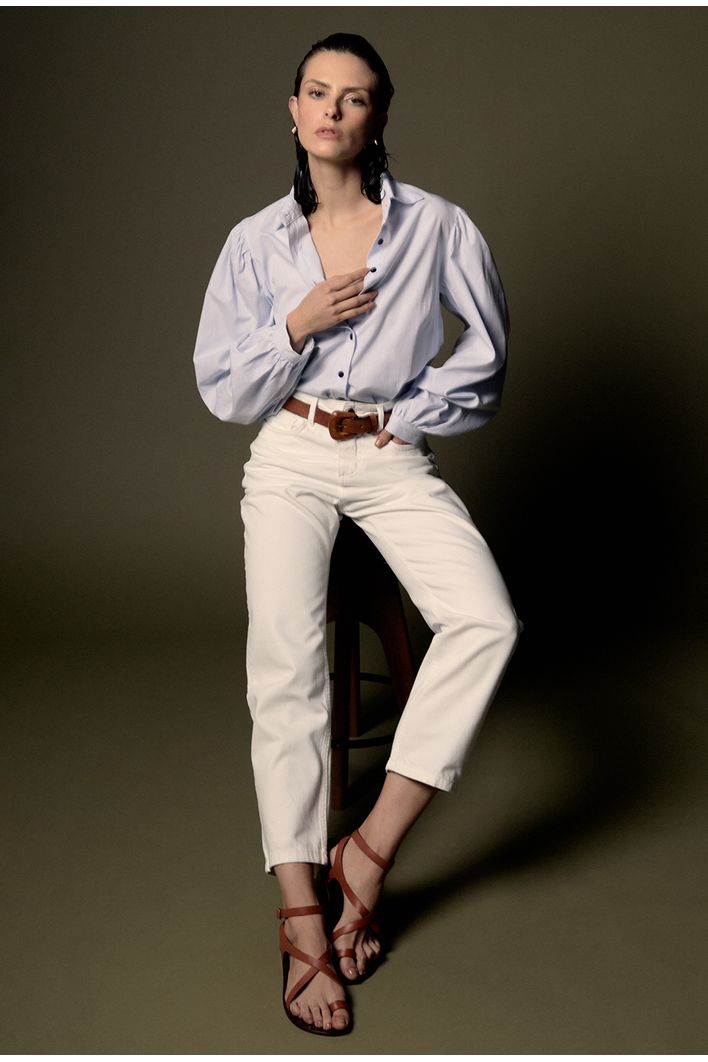 O solado flat com acabamento refinado de borda escura proporciona uma base estável, transmitindo uma sensação de confiança e pé no chão. É o calçado ideal para quem busca versatilidade no visual.