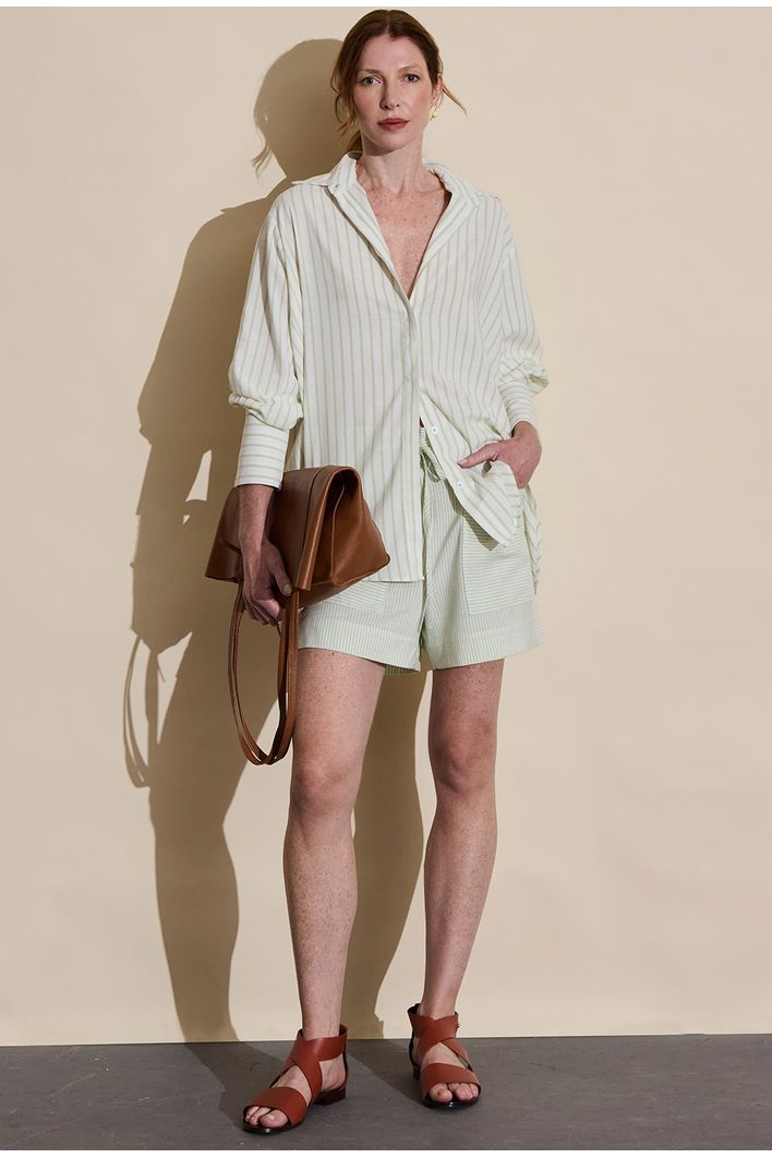 Shorts Ceram Listrado Tecido Leve - MyBasic