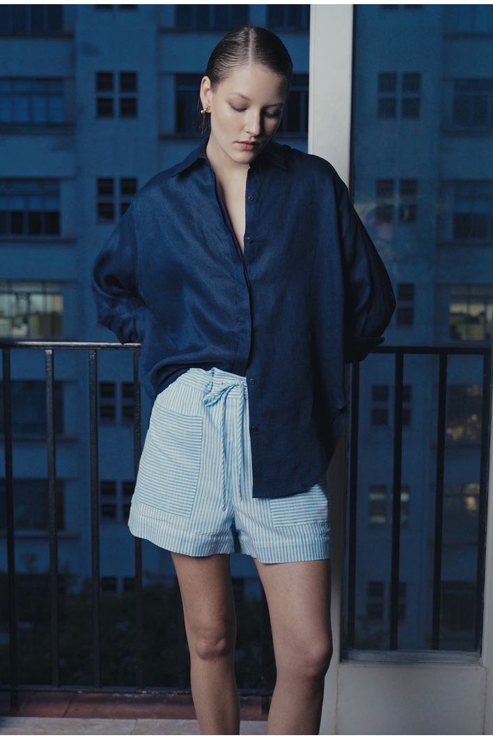 O short apresenta um estilo leve e moderno, ideal para compor produções casuais com um toque de elegância. Sua modelagem soltinha oferece conforto e liberdade de movimento, enquanto o cós com elástico e cordão ajustável garante um caimento perfeito. Os bolsos frontais adicionam praticidade e charme, tornando a peça indispensável para os dias mais quentes.