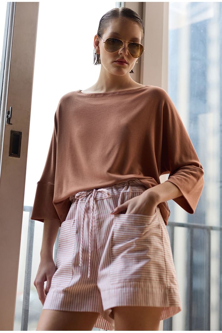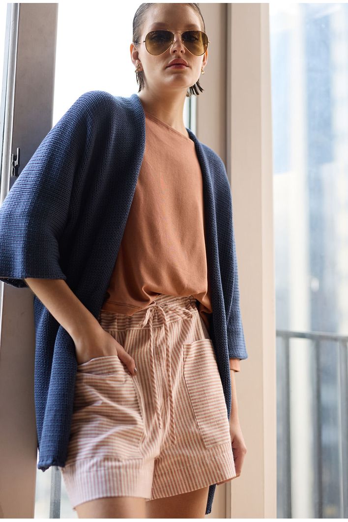 O short apresenta um estilo leve e moderno, ideal para compor produções casuais com um toque de elegância. Sua modelagem soltinha oferece conforto e liberdade de movimento, enquanto o cós com elástico e cordão ajustável garante um caimento perfeito. Os bolsos frontais adicionam praticidade e charme, tornando a peça indispensável para os dias mais quentes.