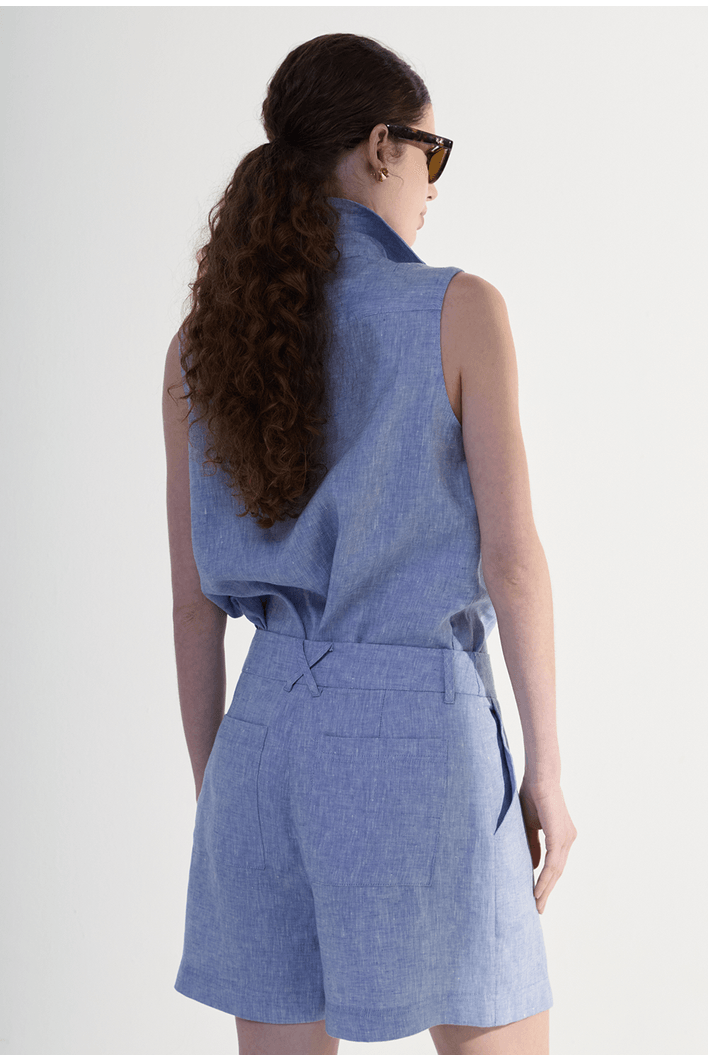 RoupasShortsShorts New Cheong em Linho Com Prega Frontal Azul Jeans