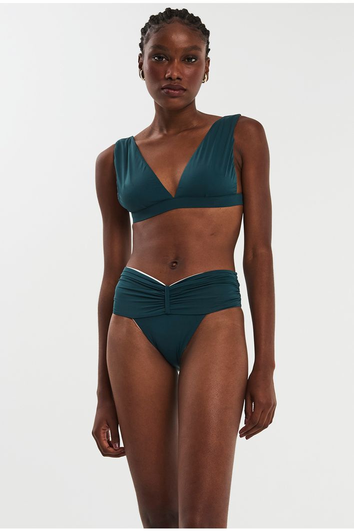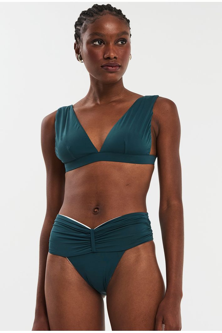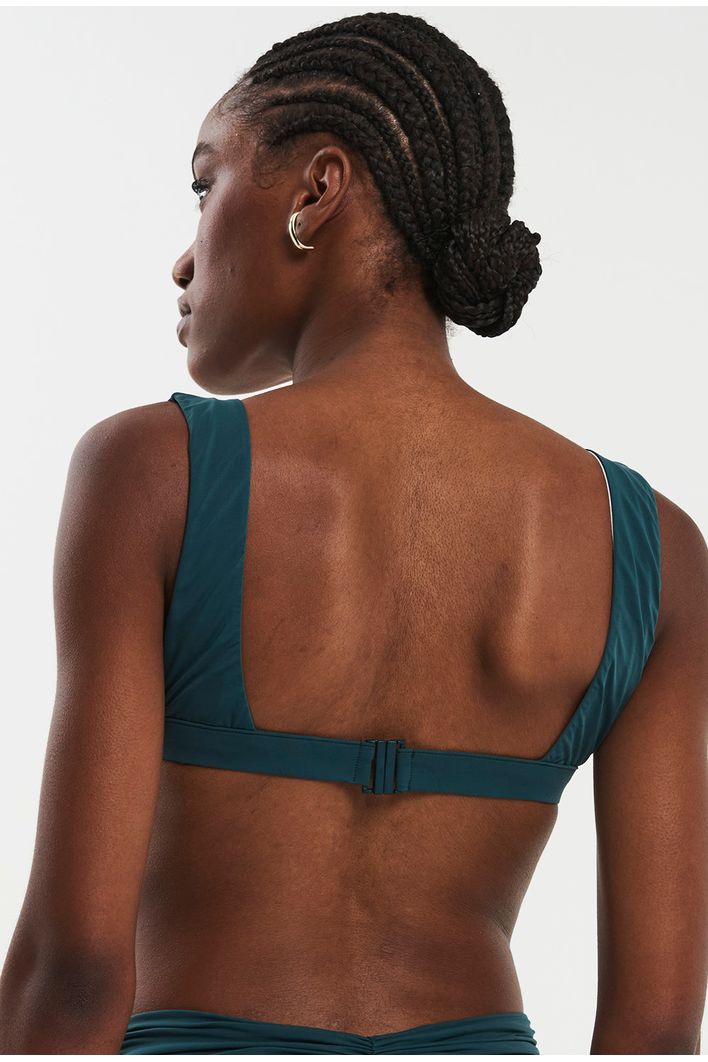 Com design moderno e versátil, nosso top Triângulo é feito em malha biodegradável, com costuras embutidas e fecho na parte de trás. Duas peças em uma, ele pode ser usado do lado verde ou off, com as alças largas, ou enroladas para dar um top especial ao look.