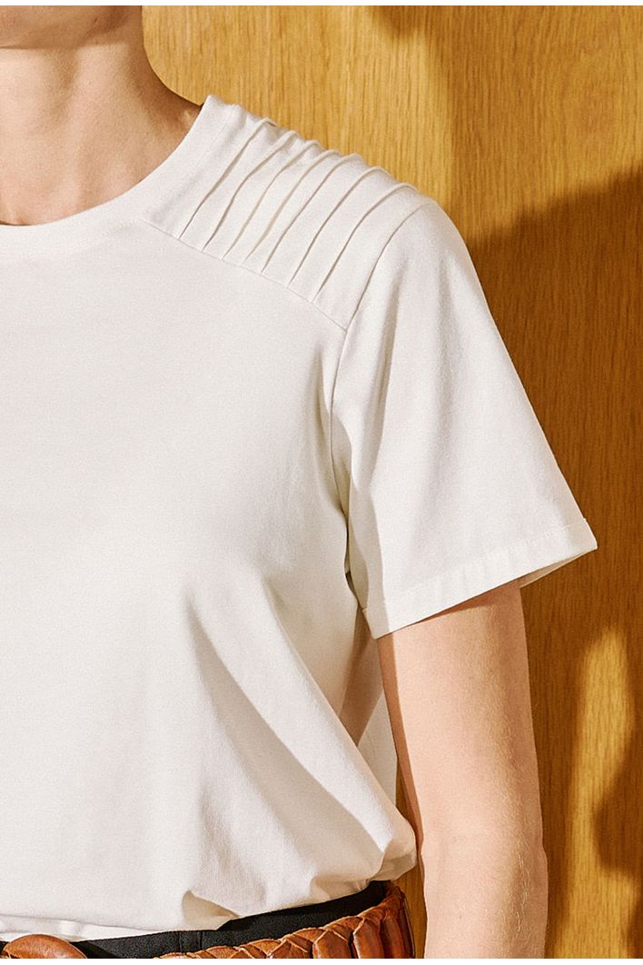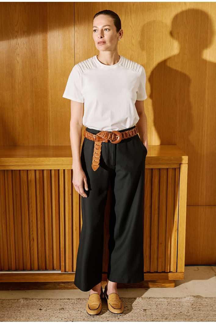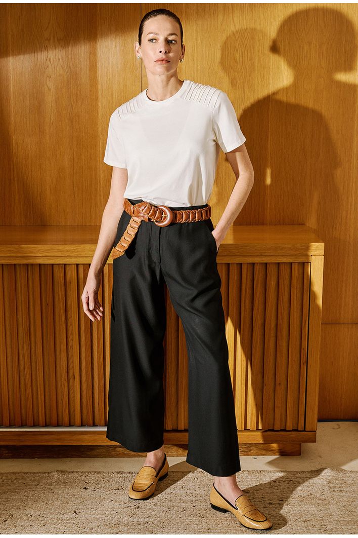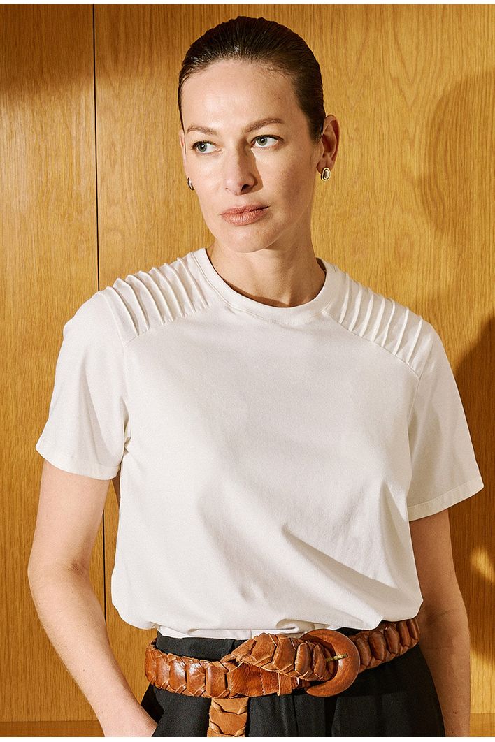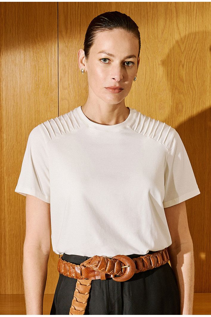 A T-shirt Mersin é a união perfeita entre sofisticação e versatilidade. Confeccionada em algodão egípcio, uma fibra nobre conhecida por sua maciez incomparável, alta durabilidade e toque luxuoso, a peça oferece conforto absoluto e respirabilidade ao longo do dia. Seu design básico ganha um charme especial com delicadas nervuras nos ombros, enquanto a modelagem soltinha, gola U e mangas curtas garantem um caimento impecável.