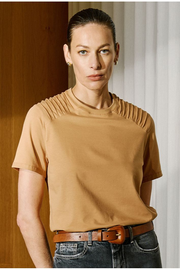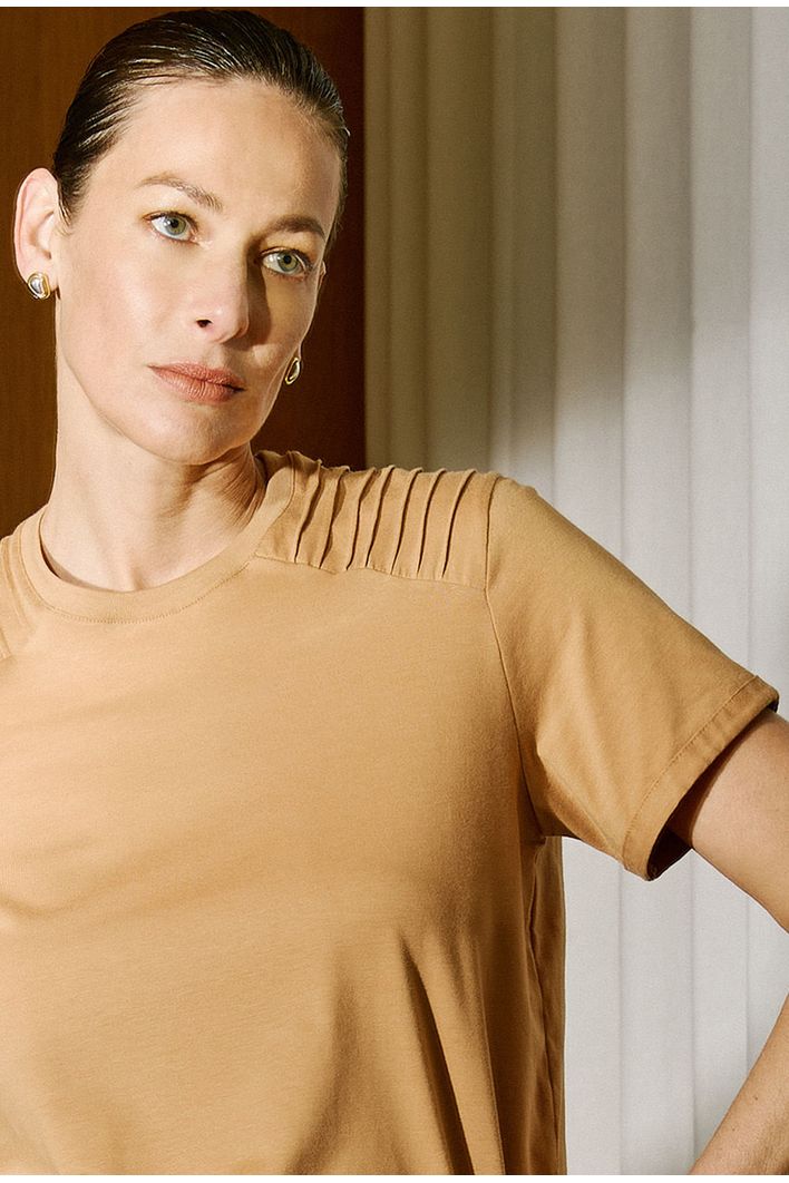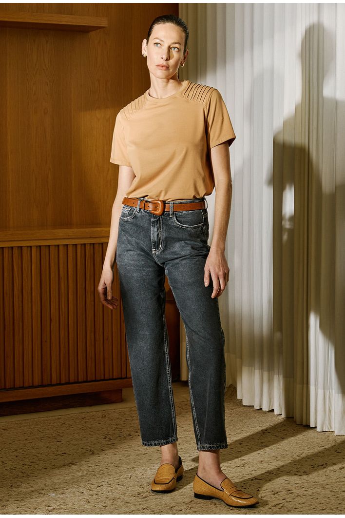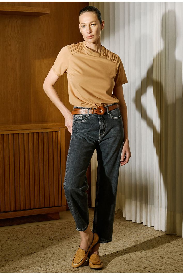 A T-shirt Mersin é a união perfeita entre sofisticação e versatilidade. Confeccionada em algodão egípcio, uma fibra nobre conhecida por sua maciez incomparável, alta durabilidade e toque luxuoso, a peça oferece conforto absoluto e respirabilidade ao longo do dia. Seu design básico ganha um charme especial com delicadas nervuras nos ombros, enquanto a modelagem soltinha, gola U e mangas curtas garantem um caimento impecável.