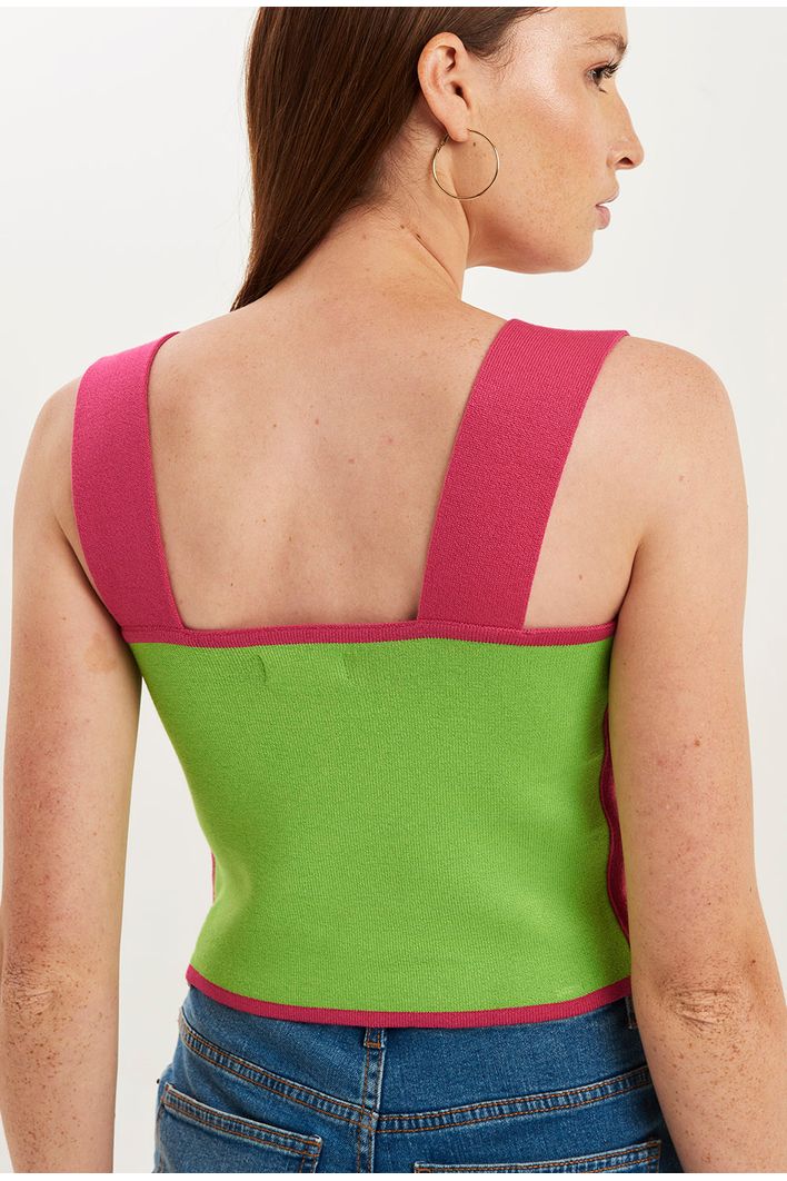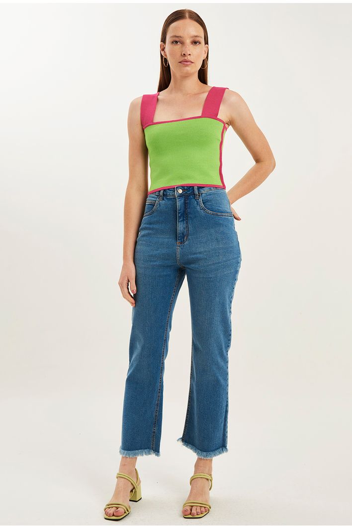 Nosso Top Little Cayman é um basic muito especial podendo ser usado de ambos os lados. Confeccionado em tricot de Viscose possui shape reto e mais ajustado, alcinhas e detalhe especial de tecelagem na borda de um dos lados. O outro lado é liso e da mesma cor que o detalhe e alças do primeiro. É uma peça divertida, muito versátil e super confortável. Para quem deseja compor produções mais despojadas aposte em peças jeans para parte debaixo e finalize com sapatos de modelos mais casuais e acessórios divertidos. Já para quem deseja um visual mais cool que tal usar o Top Little Cayman como sobreposição de uma camisa de golinha e partes de baixo com corte fino e modelagens mais soltinhas? Finalize com sapato de saltinho e acessórios delicados.