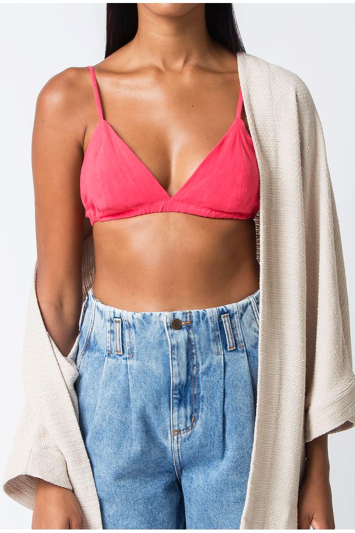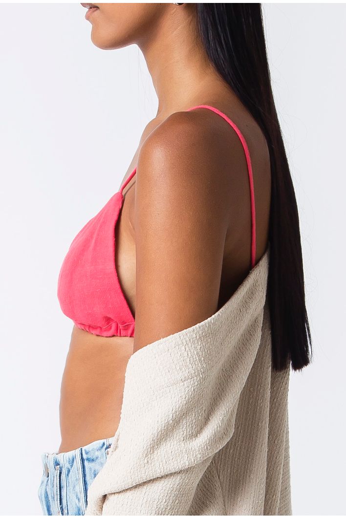 O top sousel é uma peça simples e delicada, pode ser usada como sutiã ou top, fica linda combinada com peças de cintura alta, possui elástico na base, alças reguláveis e fecho na parte de trás. Feito com tecido excedente de produção, a fim de reduzir nosso material de descarte.