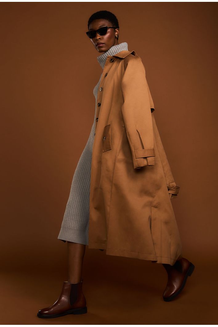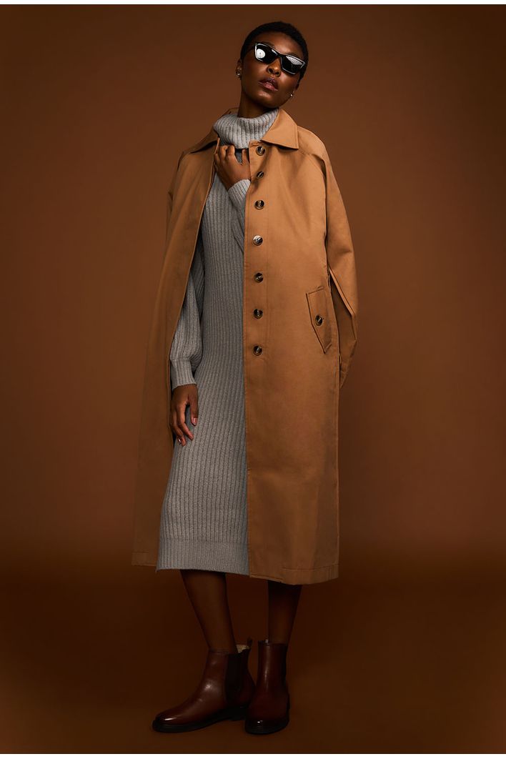 O Trench Birnie é uma peça elementar para o guarda-roupa da mulher moderna, combinando praticidade e elegância. Com seu design, que inclui transpasse e abotoamento lateral, ele oferece um ajuste confortável, valorizando a silhueta.