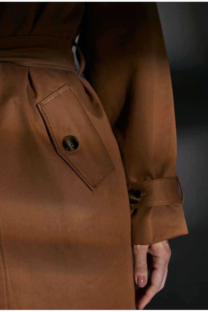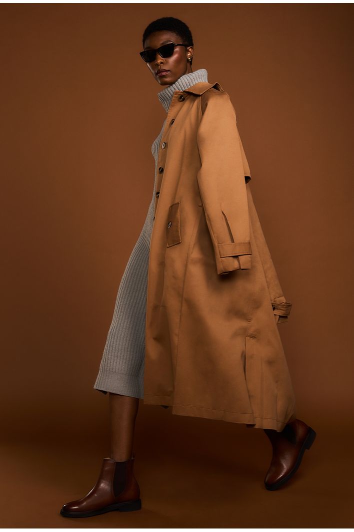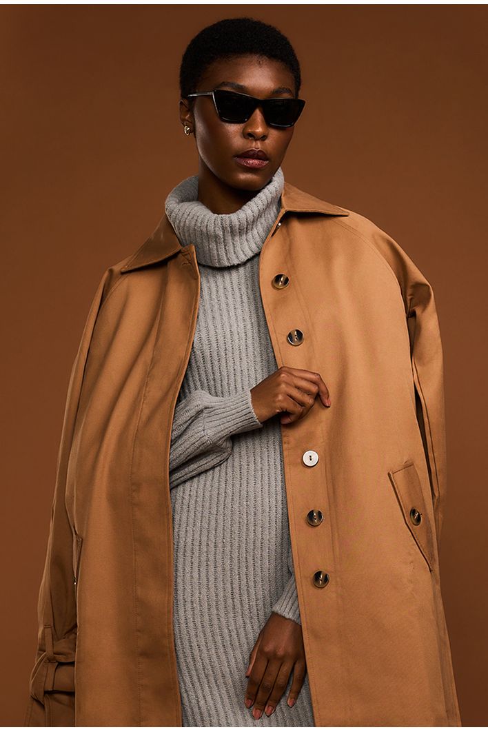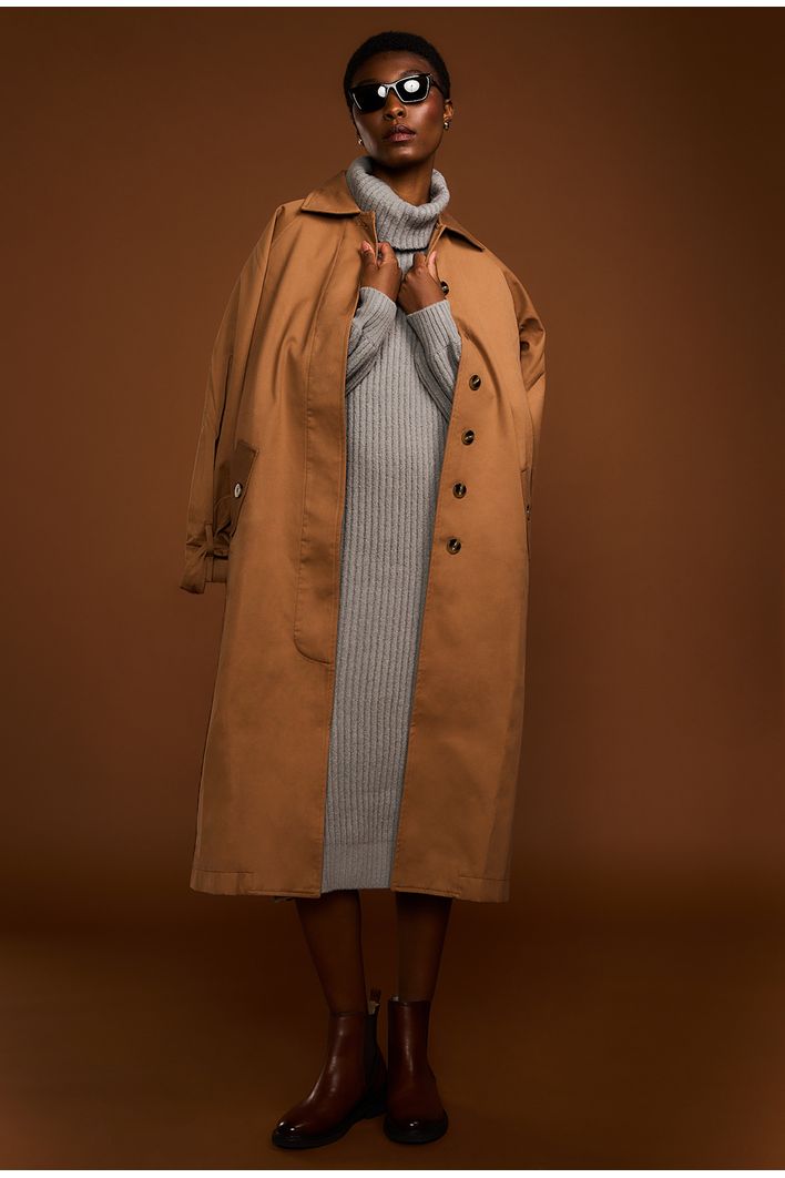 O Trench Birnie é uma peça elementar para o guarda-roupa da mulher moderna, combinando praticidade e elegância. Com seu design, que inclui transpasse e abotoamento lateral, ele oferece um ajuste confortável, valorizando a silhueta.