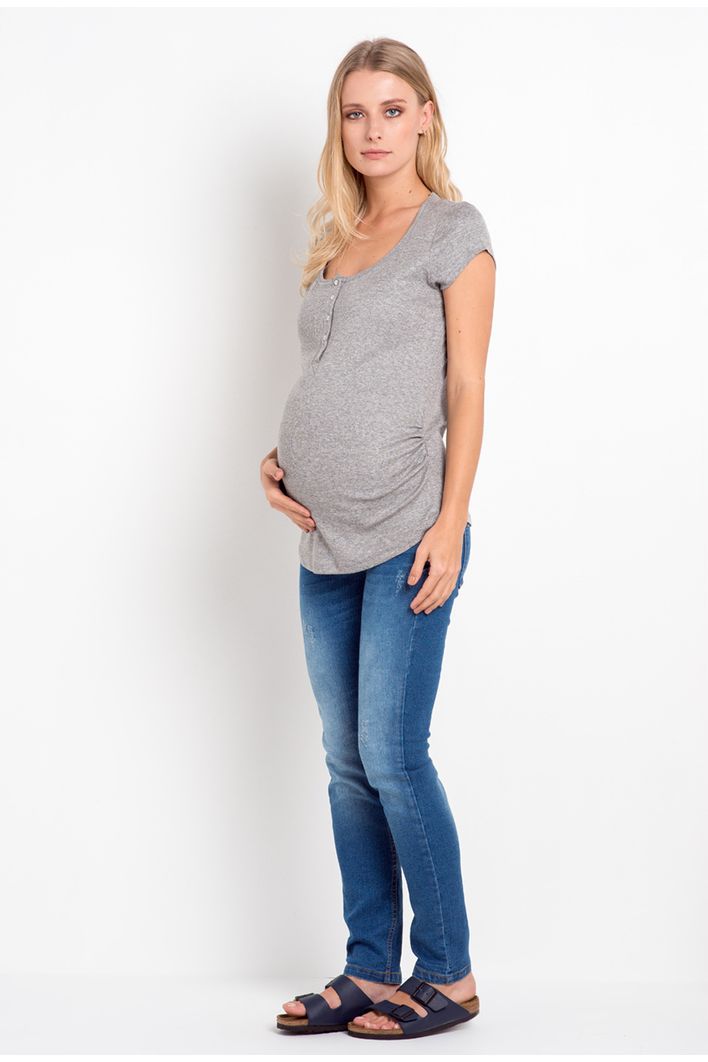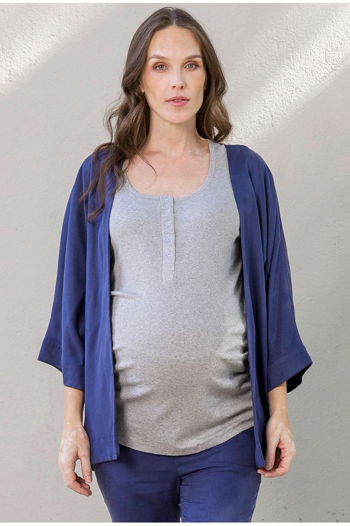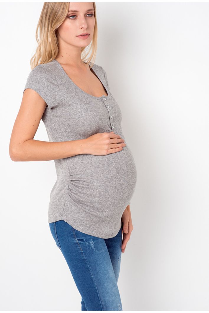 Feita em malha canelada e de alta elasticidade, a T-Shirt Aveiro é um item pensado com carinho para as futuras mamães e as que acabaram de se tornar. Possui pregas nas laterais que acompanham a barriga durante a gestação e também botões no busto que permitem mais praticidade na hora da amamentação. É uma peça básica e versátil que casa com inúmeras combinações de looks.