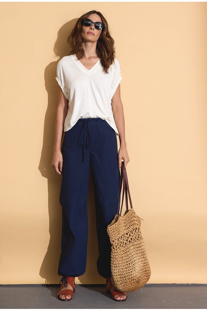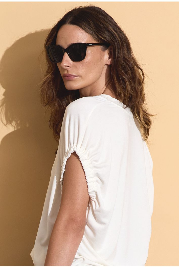 Confeccionada em modal, um tecido especial que combina tecnologia e sustentabilidade, esta blusa oferece um toque luxuoso e suavidade incomparável. O modal é uma fibra inovadora derivada da celulose de árvores de faia, conhecida por ser altamente respirável e ecologicamente responsável. Além de ser supermacio, o modal é durável e resistente a encolhimentos, o que garante que a peça mantenha seu caimento impecável por muito mais tempo.