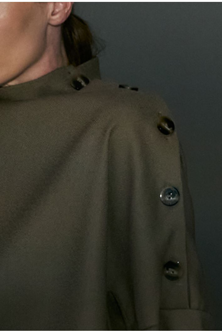 Seu design exclusivo proporciona ajuste e caimento impecável, destacando-se pelos detalhes cuidadosamente pensados. Os botões na lateral do ombro esquerdo adicionam um toque de estilo e funcionalidade, facilitando o vestir e conferindo um charme único à peça. A golinha alta não só mantém você aquecida, mas também acrescenta uma dose extra de elegância ao visual.
