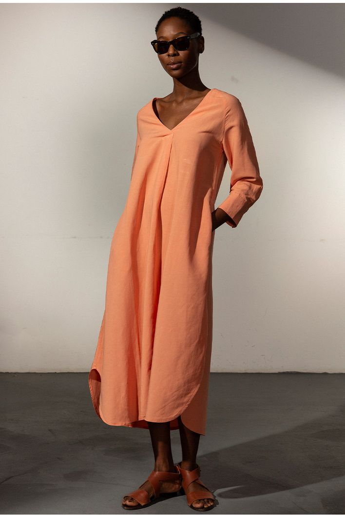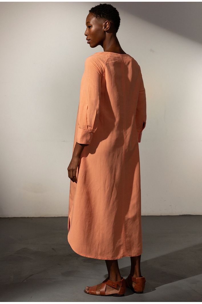 O vestido Campeche é um basic versátil e atemporal, sendo perfeito para quem ama se vestir de maneira elegante e descomplicada. É confeccionado em tecido 75% viscose e 25% linho, sendo uma peça leve e fresquinha. Sua modelagem é reta e seu comprimento médio. Possui decote V e fendas laterais pequenas que trazem ainda mais charme. Suas mangas tem comprimento 7/8 e botões em madrepérola facilitando a passagem da mão e permitindo que a manga seja dobrada e logo encurtada.