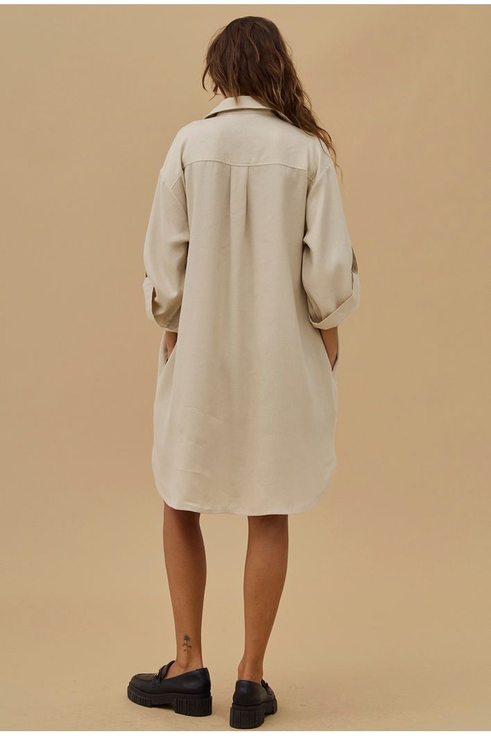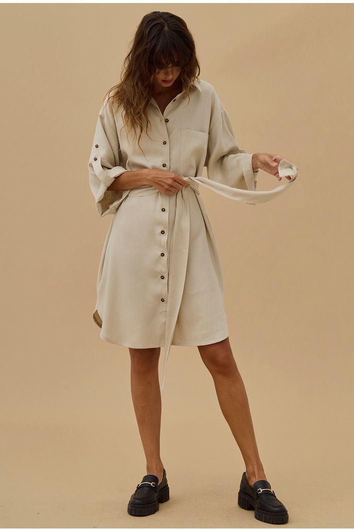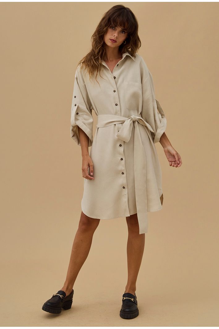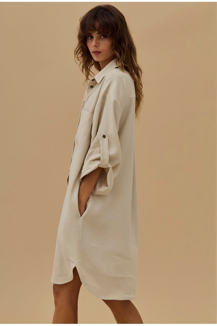 O Vestido Del Rey traduz elegância e funcionalidade em um design atemporal. Inspirado na modelagem da chemise, pode ser usado aberto ou fechado, proporcionando diferentes propostas para diversas ocasiões. Sua silhueta ampla ganha definição com a faixa na cintura, enquanto as mangas 3/4 ajustáveis com botões oferecem praticidade. O bolso na altura do busto adiciona funcionalidade, e os botões frontais por todo o comprimento charme e versatilidade à peça.