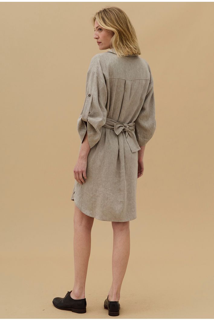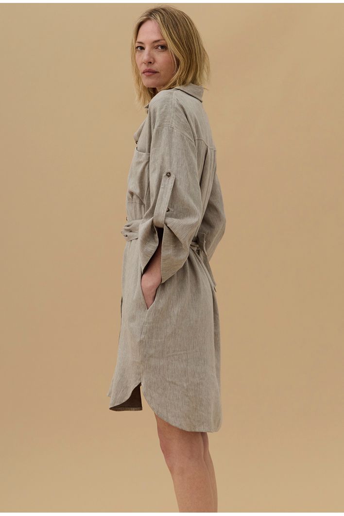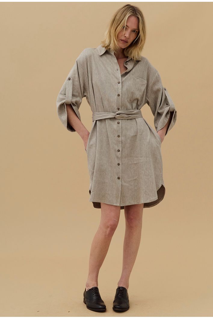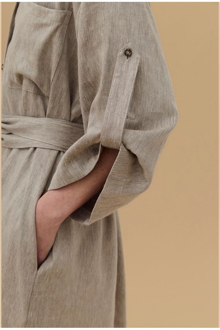 O Vestido Del Rey traduz elegância e funcionalidade em um design atemporal. Inspirado na modelagem da chemise, pode ser usado aberto ou fechado, proporcionando diferentes propostas para diversas ocasiões. Sua silhueta ampla ganha definição com a faixa na cintura, enquanto as mangas 3/4 ajustáveis com botões oferecem praticidade. O bolso na altura do busto adiciona funcionalidade, e os botões frontais por todo o comprimento charme e versatilidade à peça.