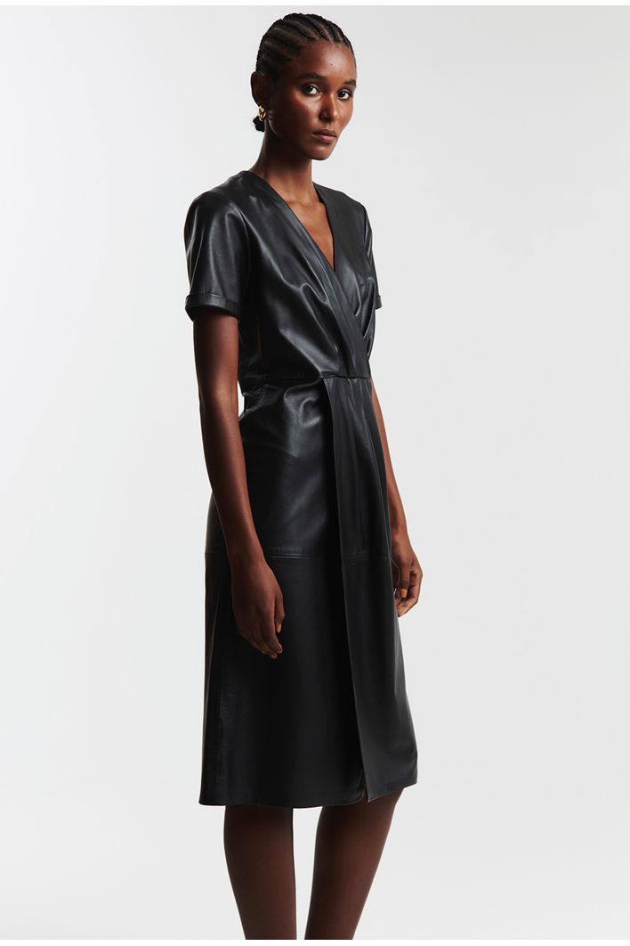 Nosso vestido Tolanaro é um basic muito charmoso e especial, feito em couro certificado, o que garante não apenas qualidade, mas também um processo saudável e sustentável. Possui modelagem transpassada, decote V e fenda frontal que tras ainda mais estilo para esta peça. Por ser feito em um tecido de alta qualidade, pode te acompanhar por vários invernos, te ajudando a criar os mais diversos looks.