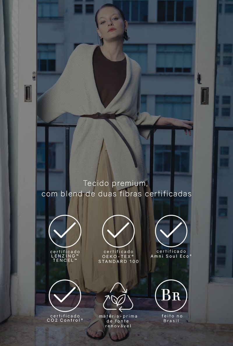 Composição: 81% Lyocell - 15% Poliamida Biodegradável - 4% Elastano