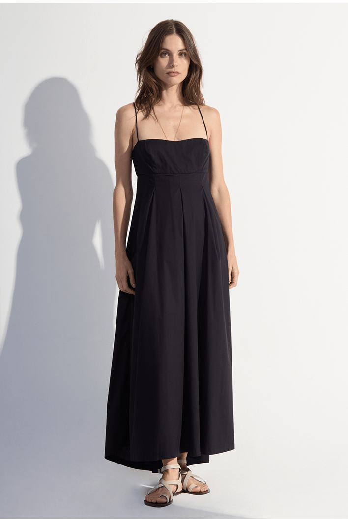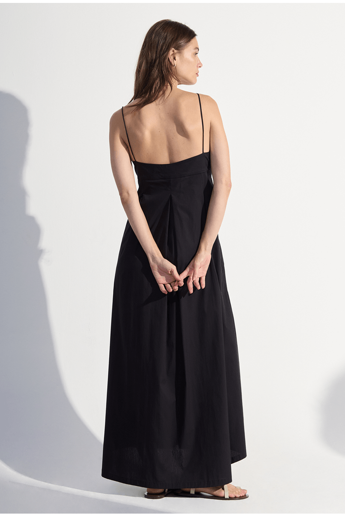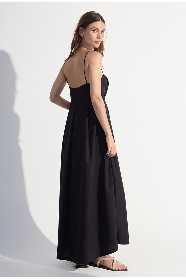 O vestido longo apresenta um design sofisticado e minimalista, ideal para quem busca leveza e elegância em uma mesma peça. O modelo conta com alças finas que valorizam os ombros e trazem delicadeza ao visual, enquanto o busto estruturado realça a silhueta com naturalidade.