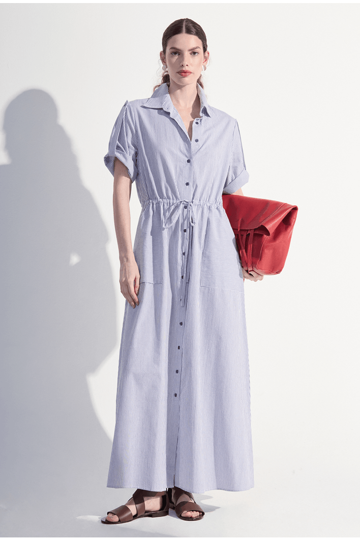 O vestido traz elegância e conforto em uma peça versátil e atemporal. Com modelagem reta e fechamento frontal por botões, ele combina o charme clássico da camisa à leveza de um vestido fluido. o ajuste na cintura por cordão oferece praticidade e valoriza a silhueta de forma sutil. Ideal para compor produções sofisticadas no dia a dia ou em ocasiões casuais, pode ser usado com sandálias, rasteiras ou tênis para um visual moderno e despretensioso.