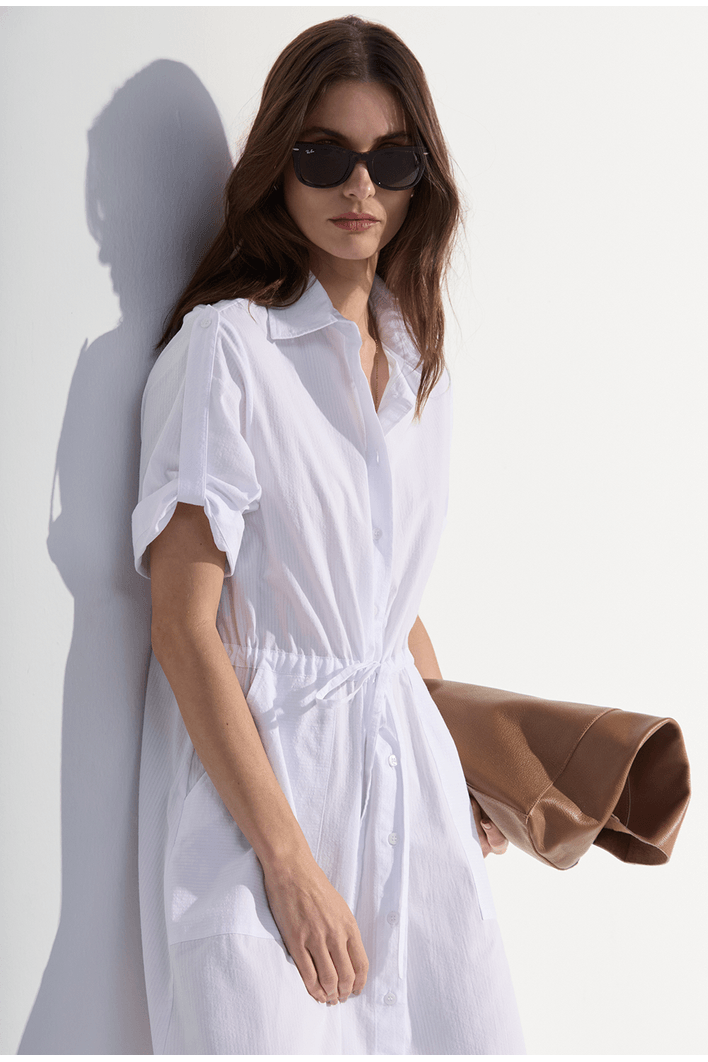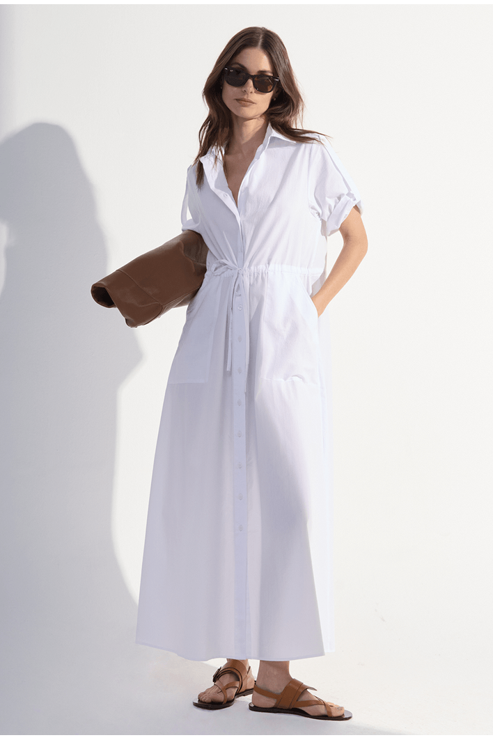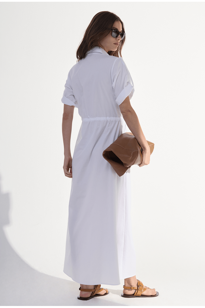 O vestido traz elegância e conforto em uma peça versátil e atemporal. Com modelagem reta e fechamento frontal por botões, ele combina o charme clássico da camisa à leveza de um vestido fluido. o ajuste na cintura por cordão oferece praticidade e valoriza a silhueta de forma sutil. Ideal para compor produções sofisticadas no dia a dia ou em ocasiões casuais, pode ser usado com sandálias, rasteiras ou tênis para um visual moderno e despretensioso.