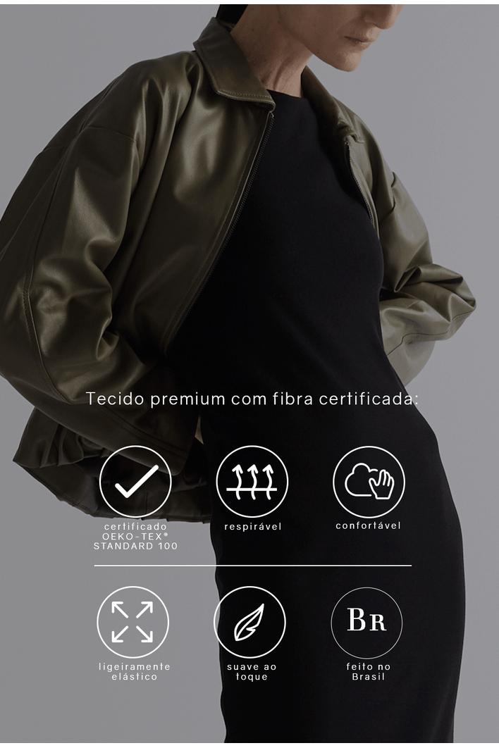 Esta peça utiliza tecido com certificação OEKO-TEX Standard 100, atestando sua qualidade e origem responsável.