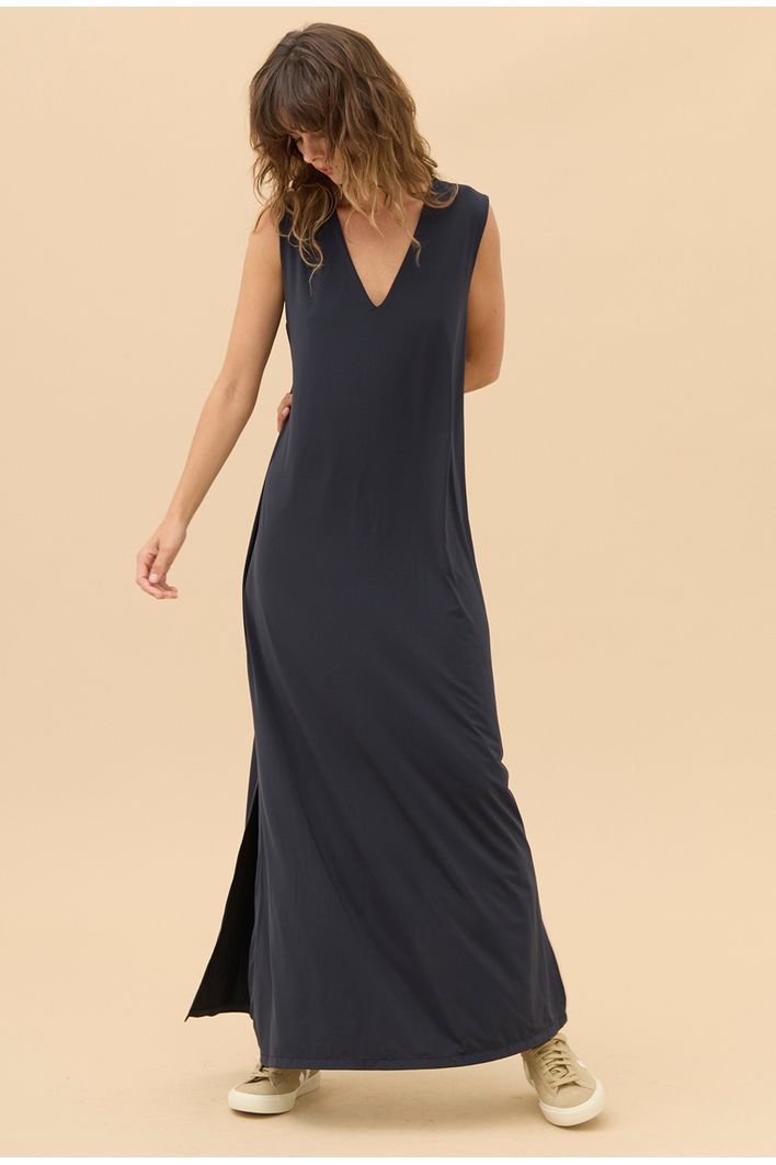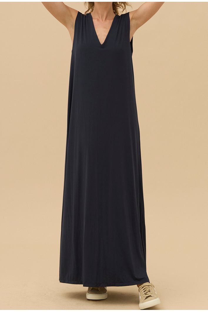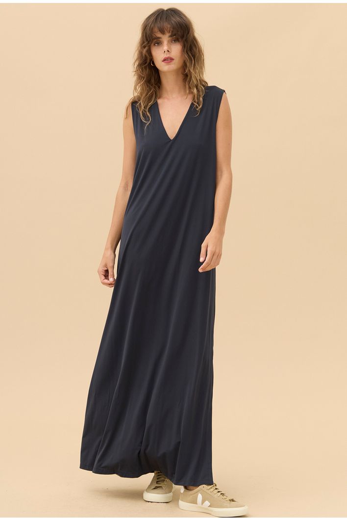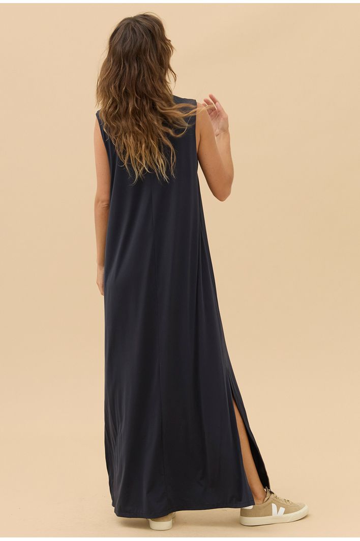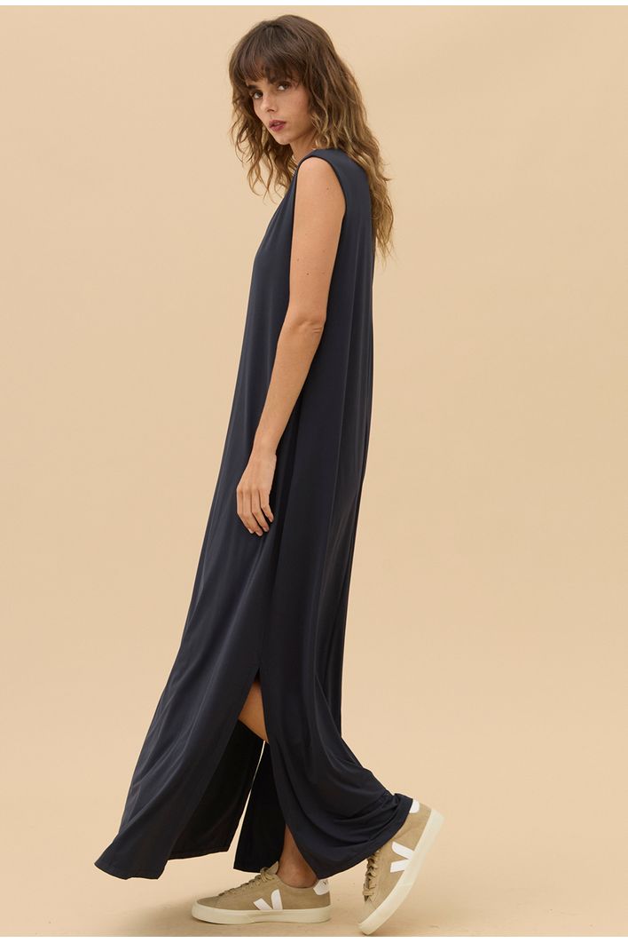 Vestido Longo Sem Manga Cortado A Fio Dallas Preto - MyBasic