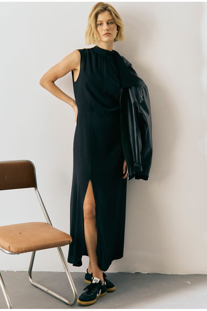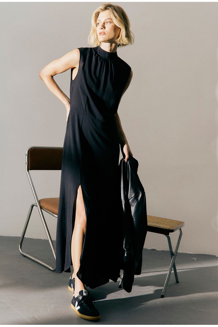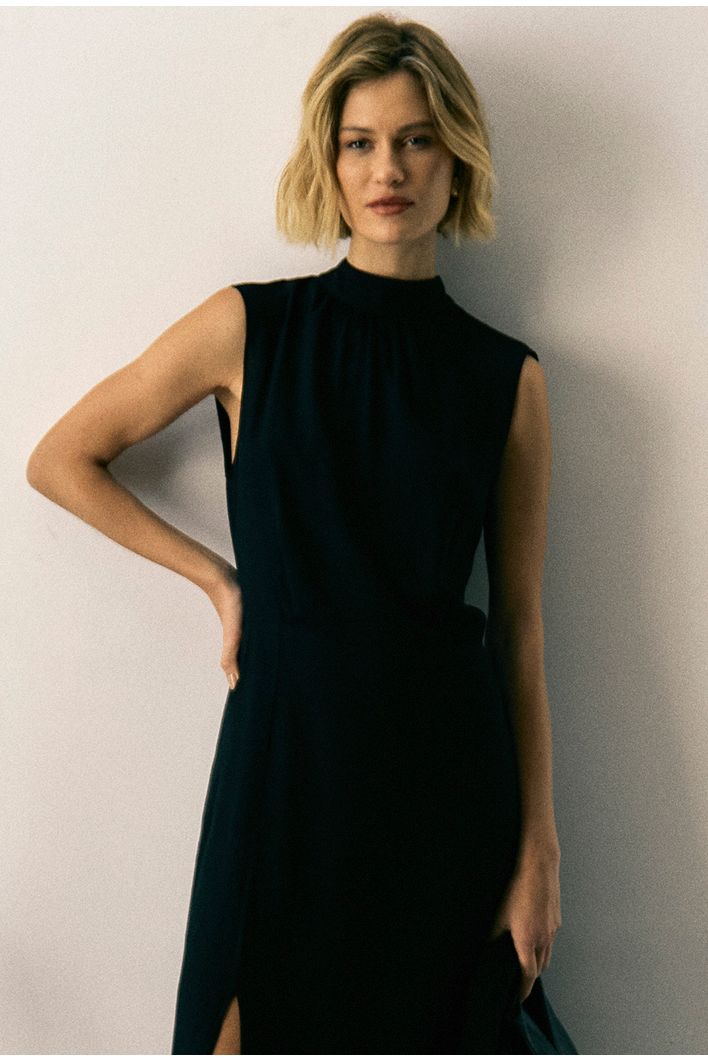 Nosso vestido Vesúvio é um basic muito especial e cheio de charme. Possui comprimento longo, fenda lateral e golinha alta, sendo uma peça super sofisticada, mas sem deixar o conforto de lado. Por ser feita em tecido 100% viscose, garante respirabilidade da pele, por ter tramas mais abertas que permitem a troca de ar. Esse tecido também causa menos alergias.