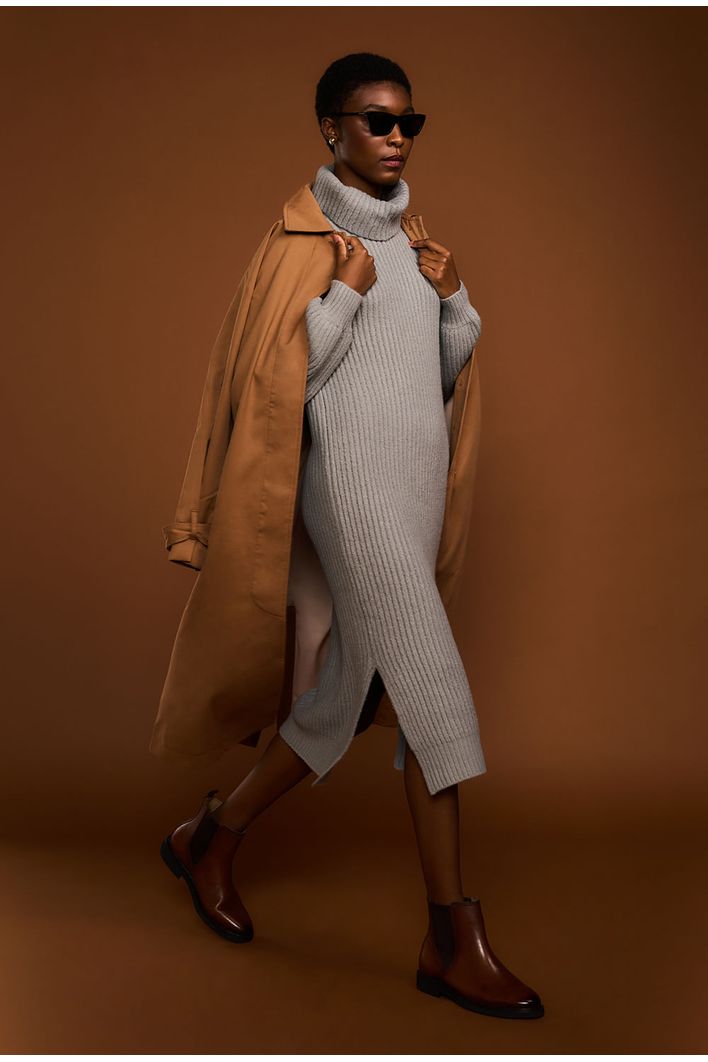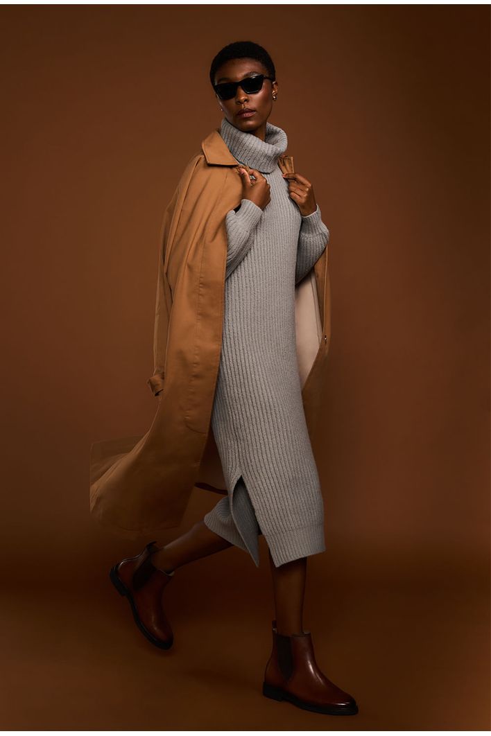 Nosso vestido Sifnos é um basic muito especial, feito em tricot com textura elegante e discreta. Possui modelagem mais ajustada, gola alta, barras nos punhos e fendas laterais. É uma peça extremamente versátil e atemporal, podendo te acompanhar por muitos invernos. É perfeito para usar com sobreposições mais pesadas, visto que é um tricot mais grosso. Possui toque macio e super confortável.