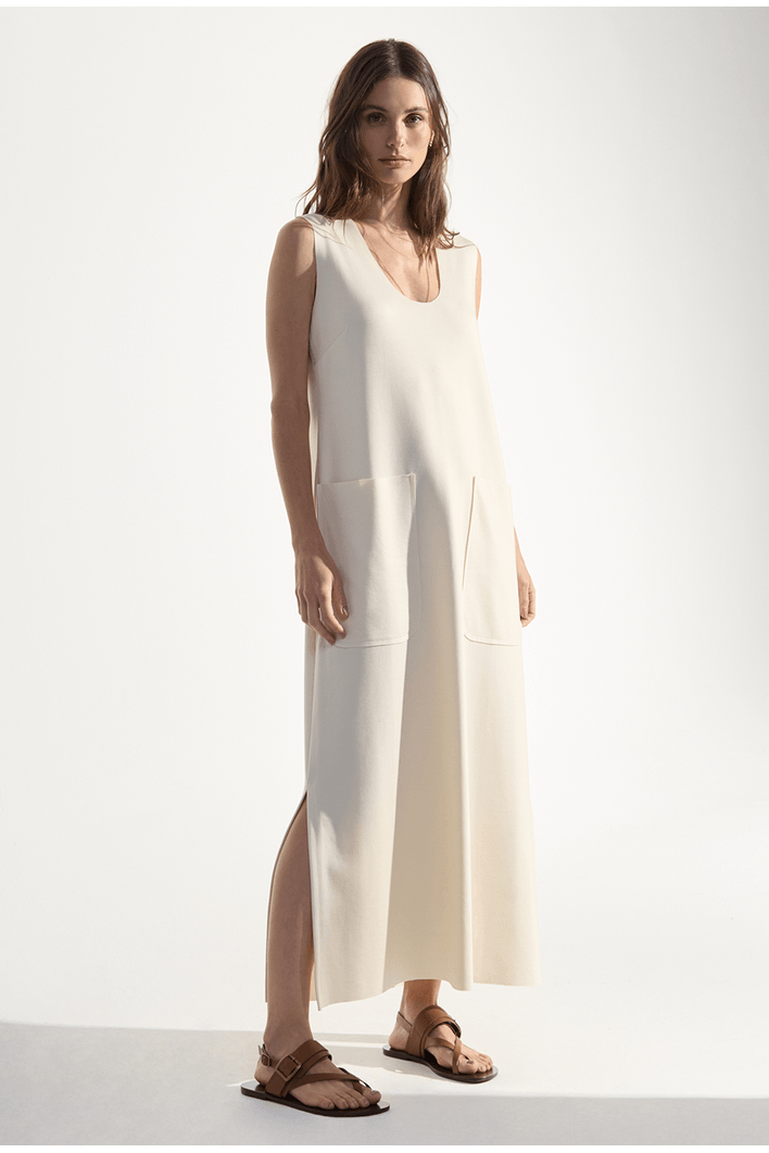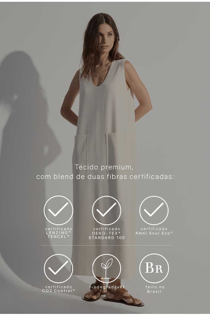 Vestido minimalista com bolsos frontais e decote em V - MyBasic
