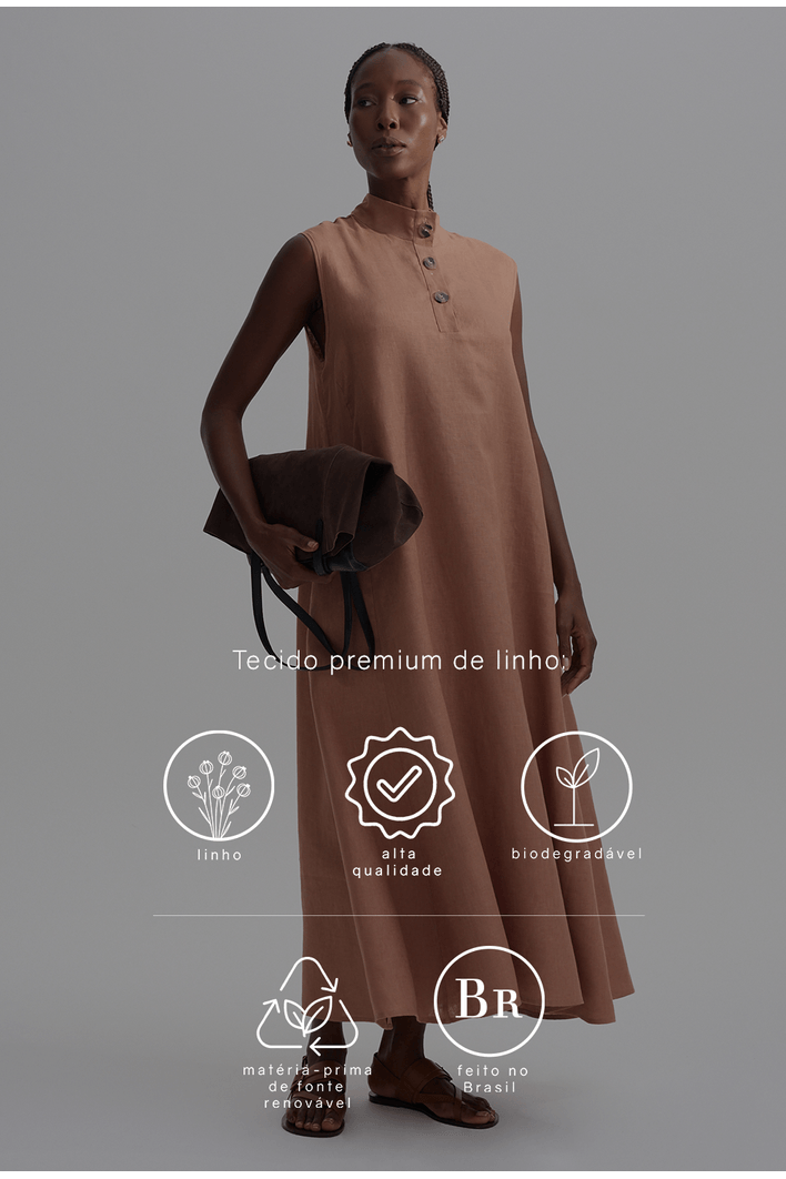 Vestido Longo com Gola Padre em Linho - MyBasic
