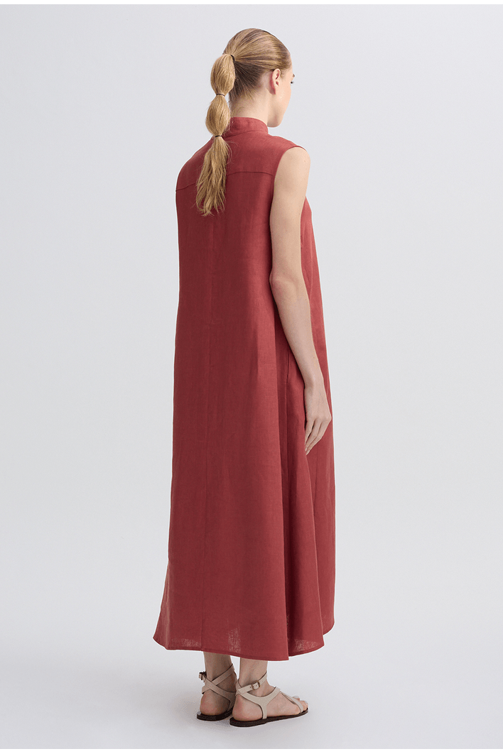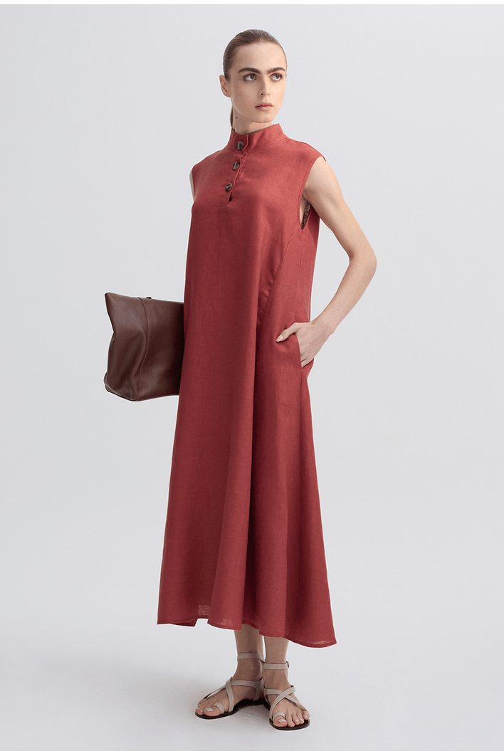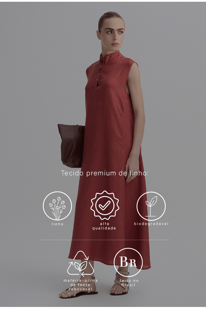 Vestido Longo com Gola Padre em Linho - MyBasic