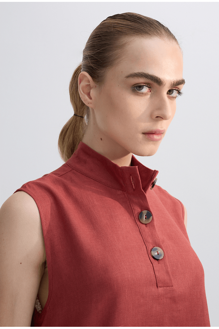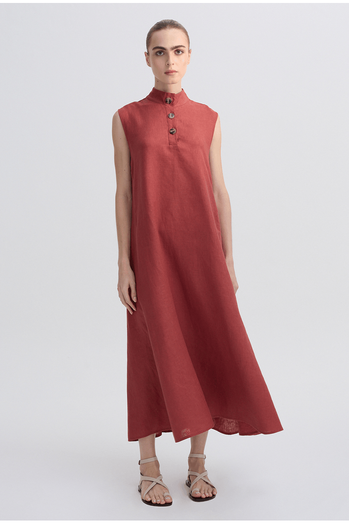 Vestido Reto em Linho Gola Padre Dominica Goiaba