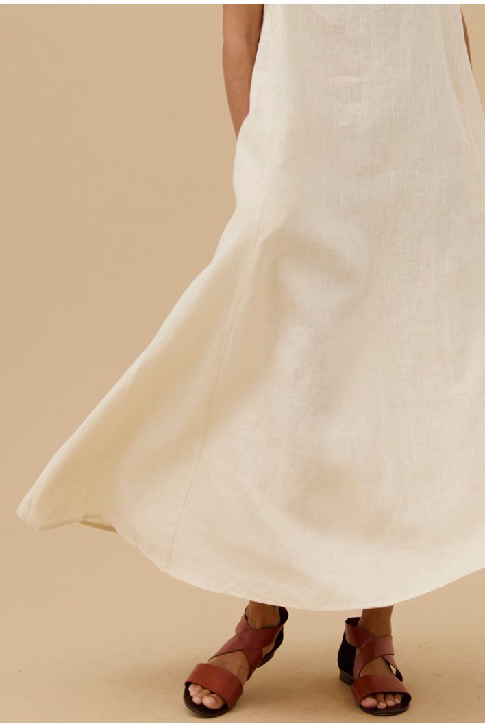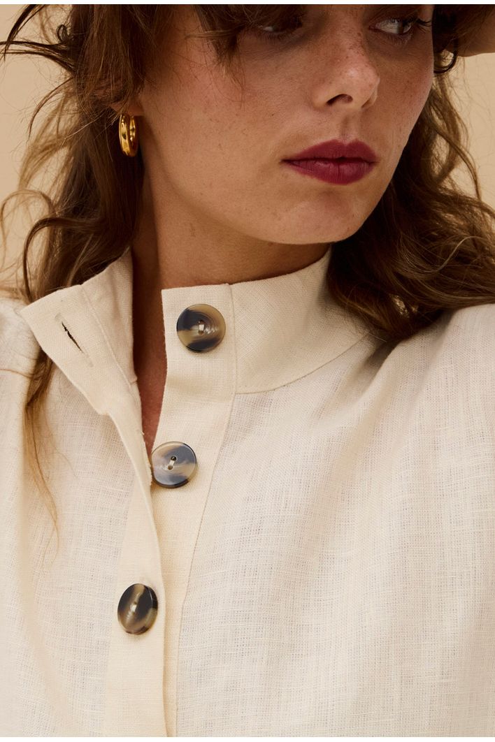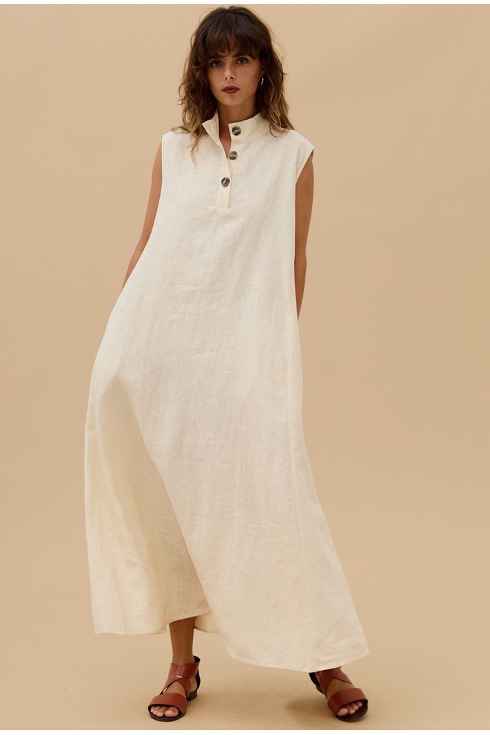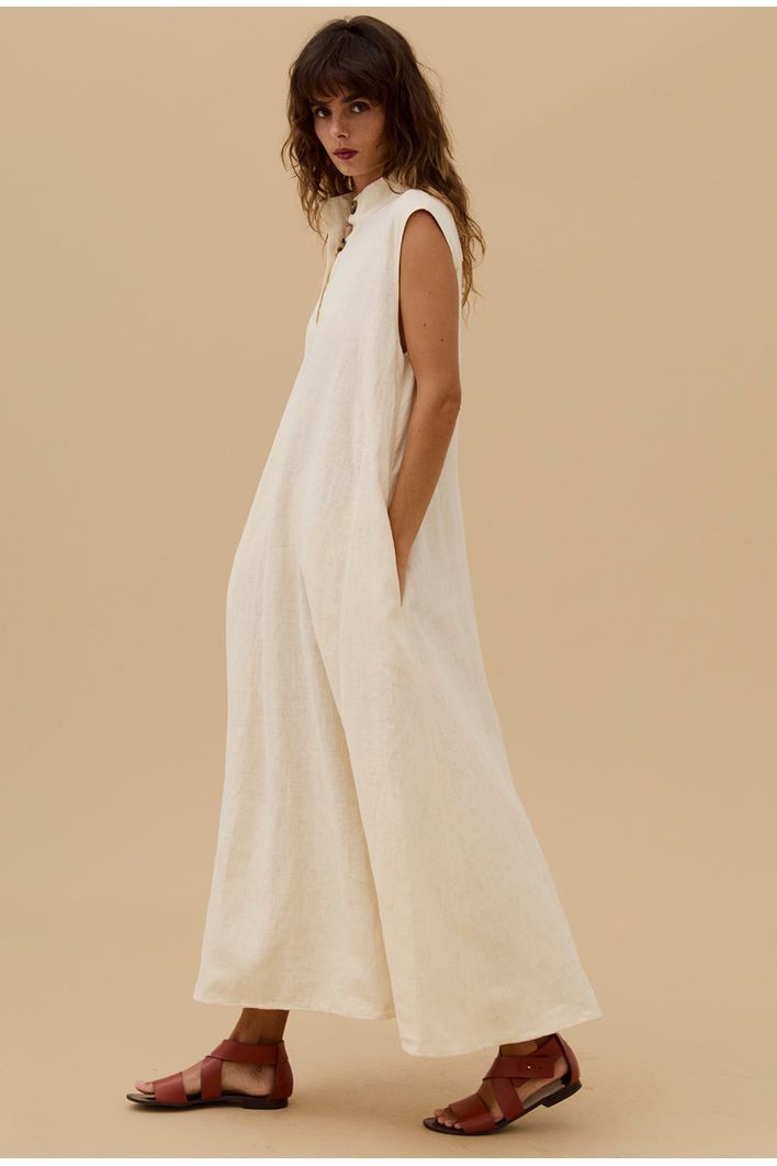 O Vestido Dominica é a expressão perfeita de sofisticação e naturalidade. Confeccionado em 100% linho, fibra nobre reconhecida por sua leveza, frescor e durabilidade, a peça proporciona conforto térmico excepcional, permitindo que a pele respire mesmo nos dias mais quentes. Seu caimento estruturado e fluido valoriza a silhueta com elegância, enquanto a gola padre e os três botões delicadamente posicionados acrescentam um toque de charme e modernidade. Com comprimento longuete, o vestido alonga a silhueta de forma sutil, tornando-se uma escolha versátil para diversas ocasiões.